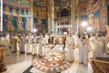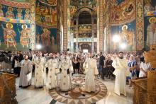 Sfânta și Dumnezeiasca Liturghie a fost săvârșită de Înaltpreasfințitul Părinte Petru, Arhiepiscopul Chișinăului, Mitropolitul Basarabiei și Exarhul Plaiurilor, împreună cu un sobor de ierarhi ai Bisericii Ortodoxe Române: