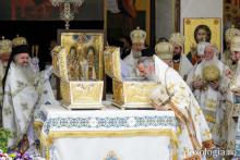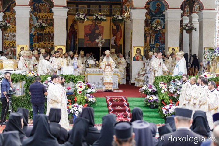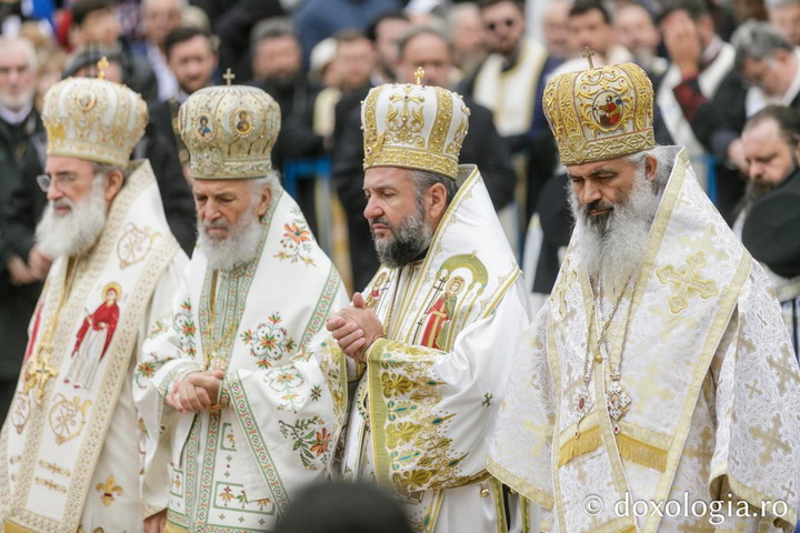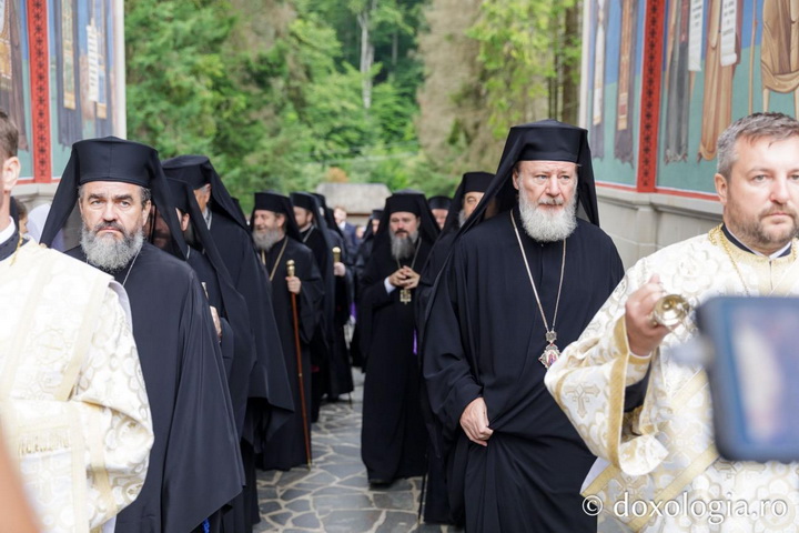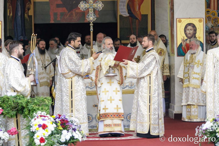 Sfânta și Dumnezeiasca Liturghie a fost săvârșită de Înaltpreasfințitul Părinte Teofan, Mitropolitul Moldovei și Bucovinei, împreună cu un sobor de ierarhi ai Bisericii Ortodoxe Române. Din soborul de arhierei au făcut parte: