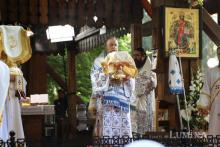 Racla cu moaştele Sfântului Serafim cel Răbdător a fost adusă în procesiune din biserica mănăstirii şi aşezată într-un baldachin din apropierea altarului din pădure, pentru ca mulţimile de pelerini să aibă posibilitatea să aducă cinstire noului ocrotitor al aşezământului monahal.