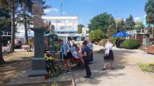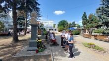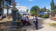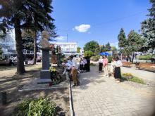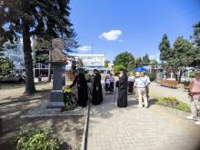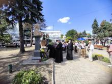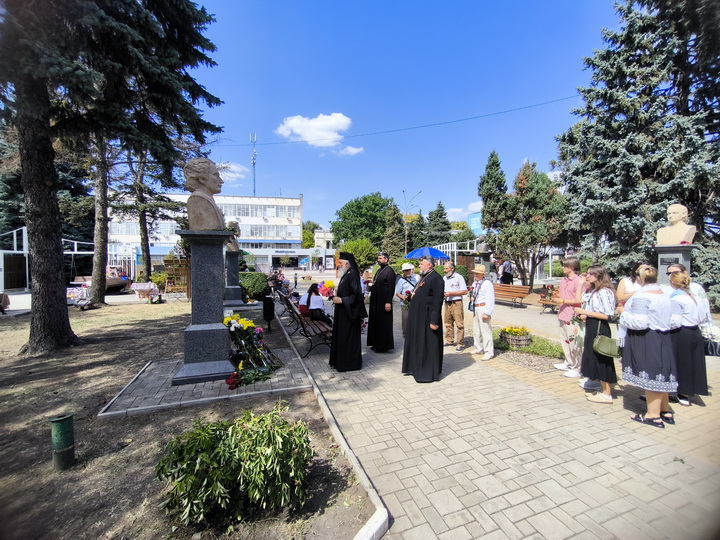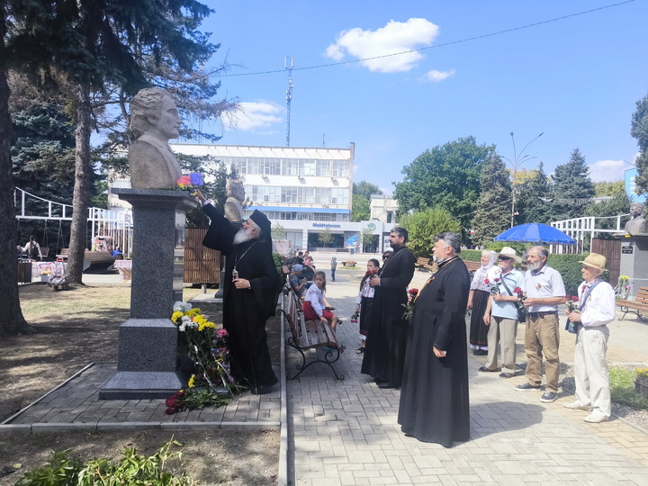 Apoi, PS Antonie, împreună cu câțiva slujitori ai altarului, un grup de credincioși și o parte din membrele Societății Femeilor Ortodoxe din Episcopia de Bălți (președintă – dna Liliana Lungu), au depus flori la busturile personalităţilor de pe Aleea Clasicilor din oraşul Bălţi – Mihai Eminescu, Ion Creangă, Grigorie Vieru şi Mihai Volontir.