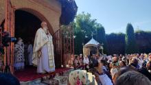 Sfânta slujbă a fost oficiată la Altarul de vară „Izvorul Tămăduirii”. Din soborul de slujitori au făcut parte şi Pcuv. Arhimandritu Arsenie Hanganu, exarhul mănăstirilor din zona Iaşi, PC părinte Cosmin Gubernat, consilierul cultural al Episcopiei Hușilor, PC părinte Dorian Revenco, protopopul de Bălţi, şi PC părinte Igor Roşca, protopopul de Edineţ și Donduşeni.