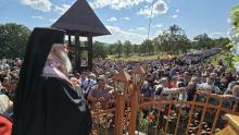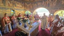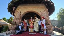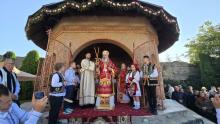 Sfânta Liturghie a fost oficiată în Altarul de vară „Izvorul Tămăduirii” al mănăstirii, în tot acest timp oamenii au continuat să se închine la icoana făcătoare de minuni a Maicii Domnului, ce a fost aşezată într-un baldachin împodobit cu flori.