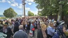 După Sfânta Liturghie, clericii şi credincioşii au coborât la Poarta „Bucuria Crucii”. Pe parcursul traseului s-au citit 14 pericope evanghelice şi s-au rostit ectenii. În faţa soborului, Sfânta Cruce, alături de prapuri, a fost purtată în procesiune de ctitorii celor 14 troiţe, aşa cum este tradiţia. Oamenii au cântat împreună cu membrii grupului psaltic Troparul Sfintei Cruci şi alte cântări specifice acestei zile.