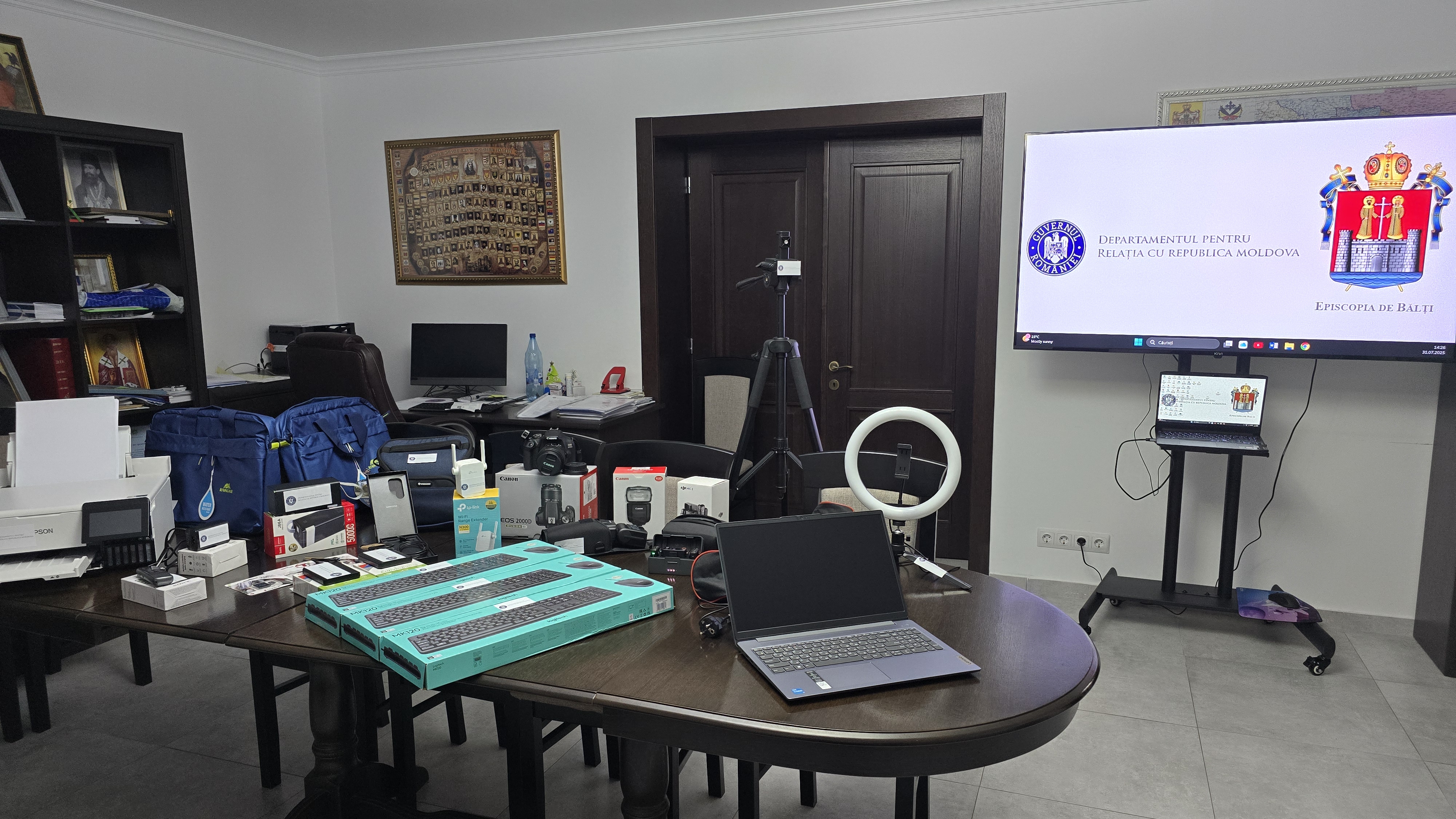 Cu sprijinul financiar venit din partea DRRM, Biroul de Presă al Episcopiei de Bălți a fost dotat cu: un aparat de fotografiat, un smartphone performant, un reportofon, 2 laptopuri, un calculator (monobloc) de masă, un SMART TV de 65”, hard disk-uri externe și alte dispozitive de stocare a informației, microphone wireless, tripod multifuncțional, un power bank de 50000mAh, o imprimantă coloră multifuncțională, o imprimantă alb/negru multifuncțională și alte componente (genți, huse, keyboard+mouse ș.a.) iar echipa Biroului de presă a fost instruită cu privire la utilizarea echipamentelor IT achiziționate.