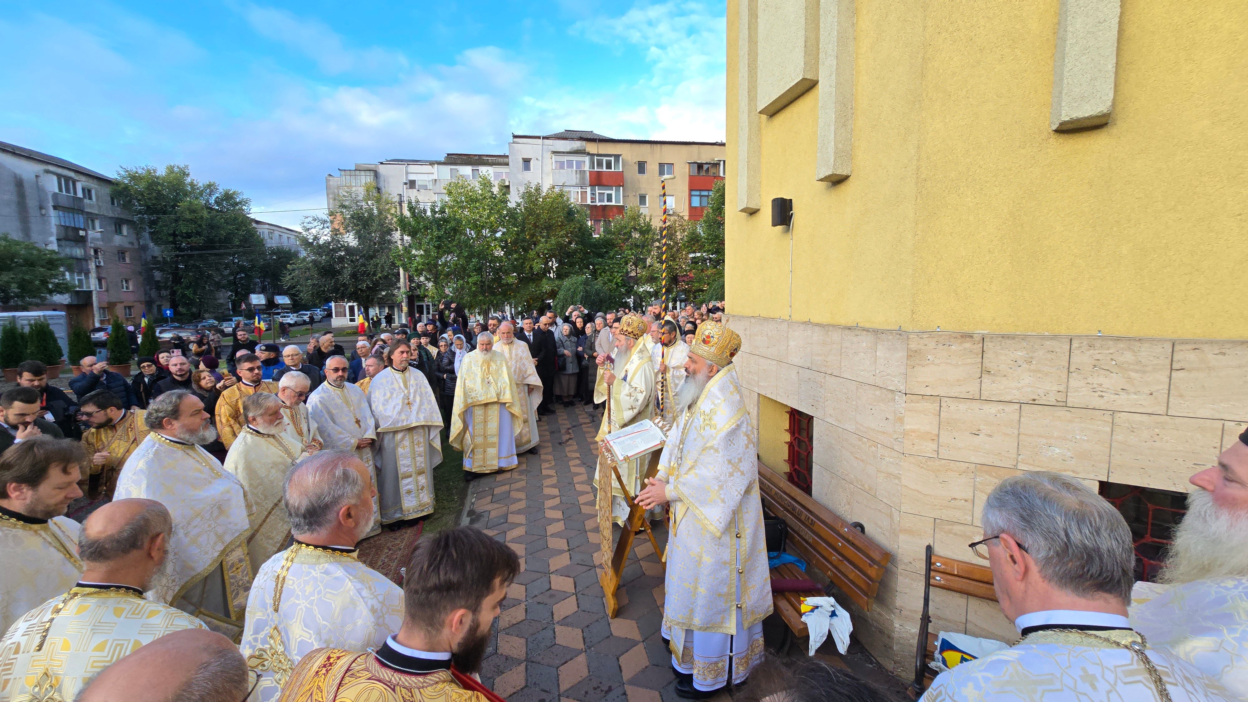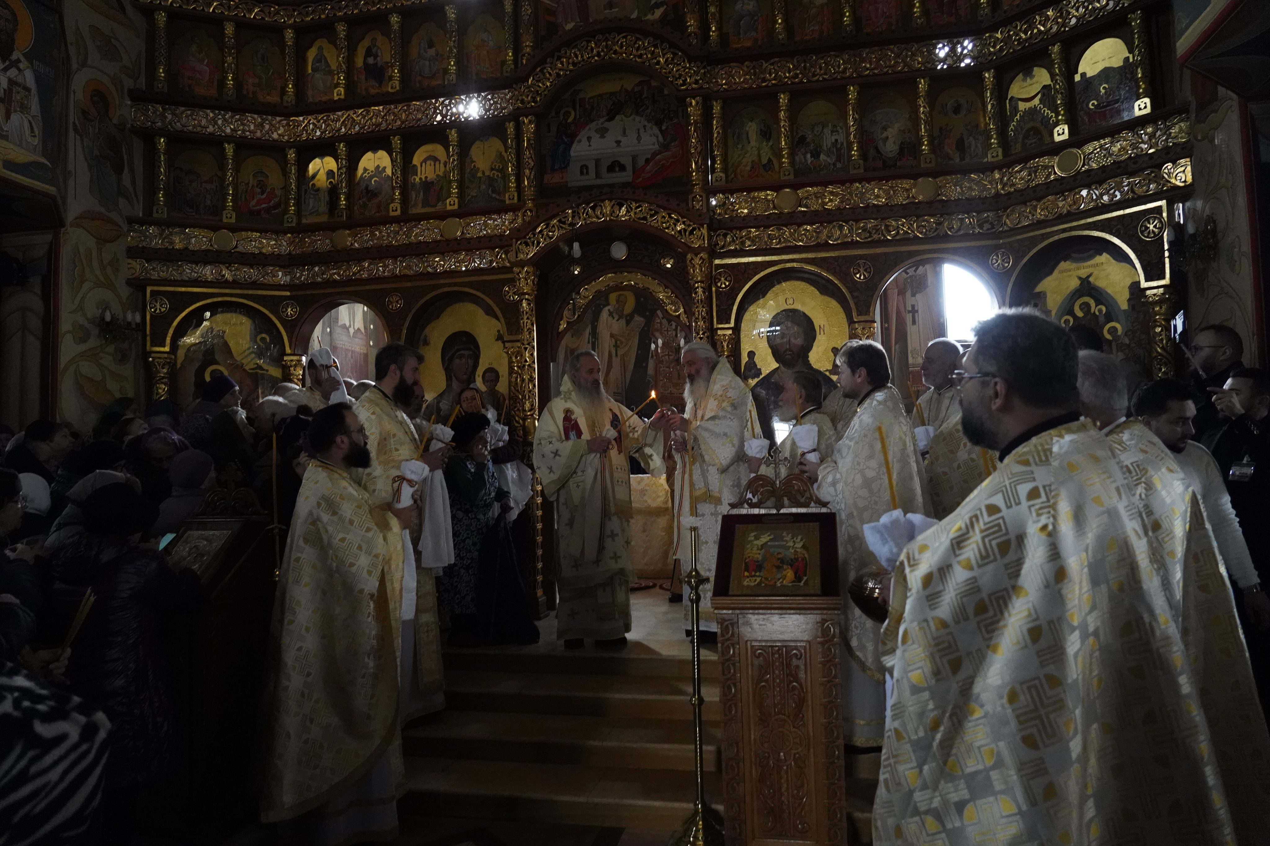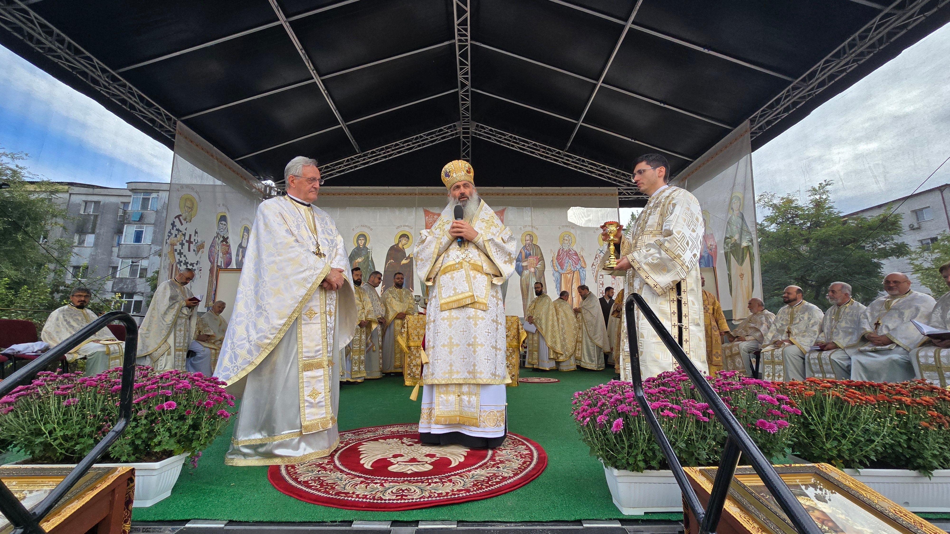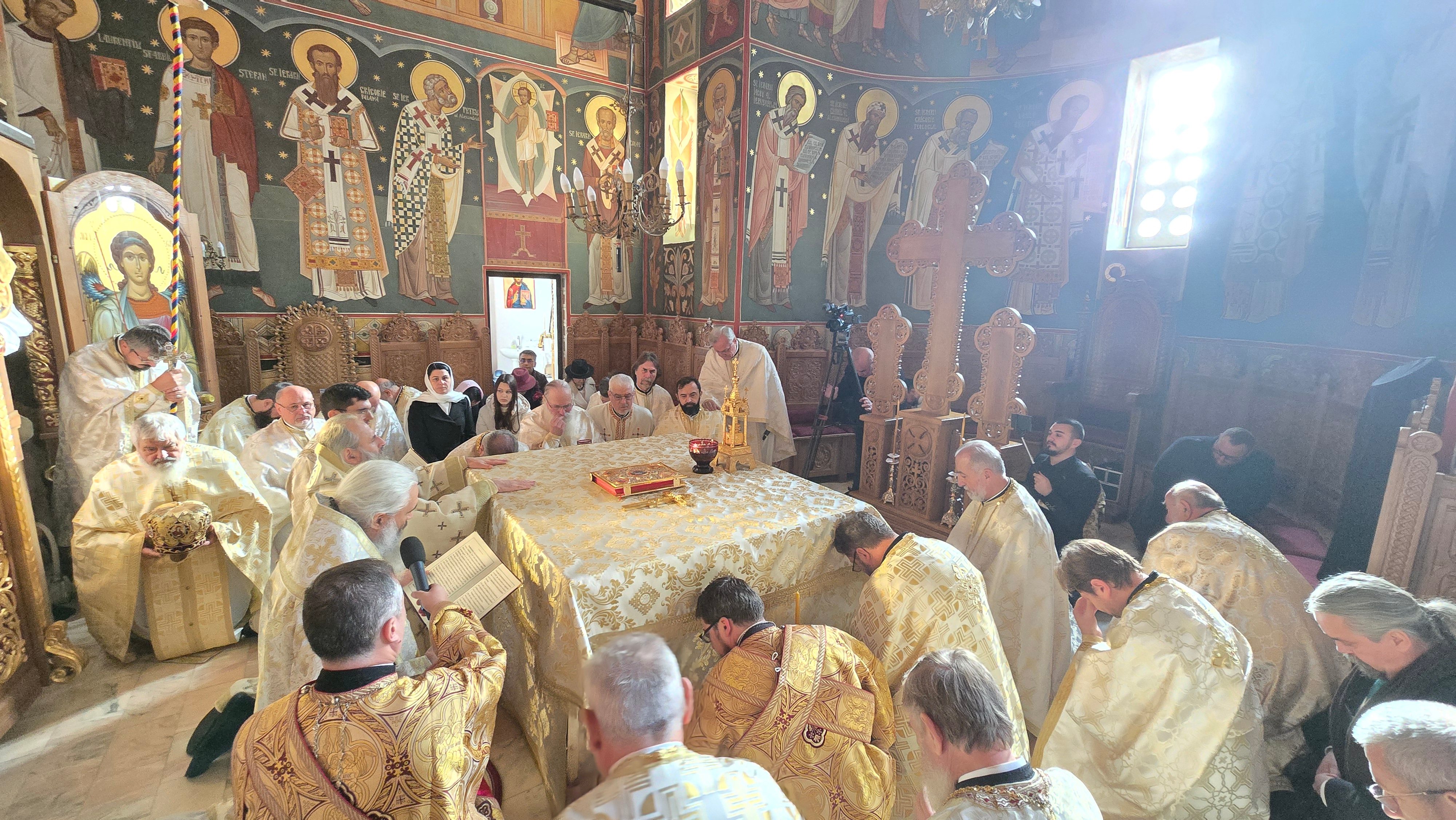 Evenimentul liturgic a fost oficiat de IPS Părinte Mitropolit Teofan și PS Părinte Episcop Antonie, care au binecuvântat prin ungere cu Sfântul și Marele Mir și prin stropire cu apă sfințită pereții exteriori ai bisericii, iar după înconjurarea lăcașului dimpreună cu credincioșii au sfințit și pecetluit Sfântul Altar, binecuvântând totodată catapeteasma și pictura interioară.