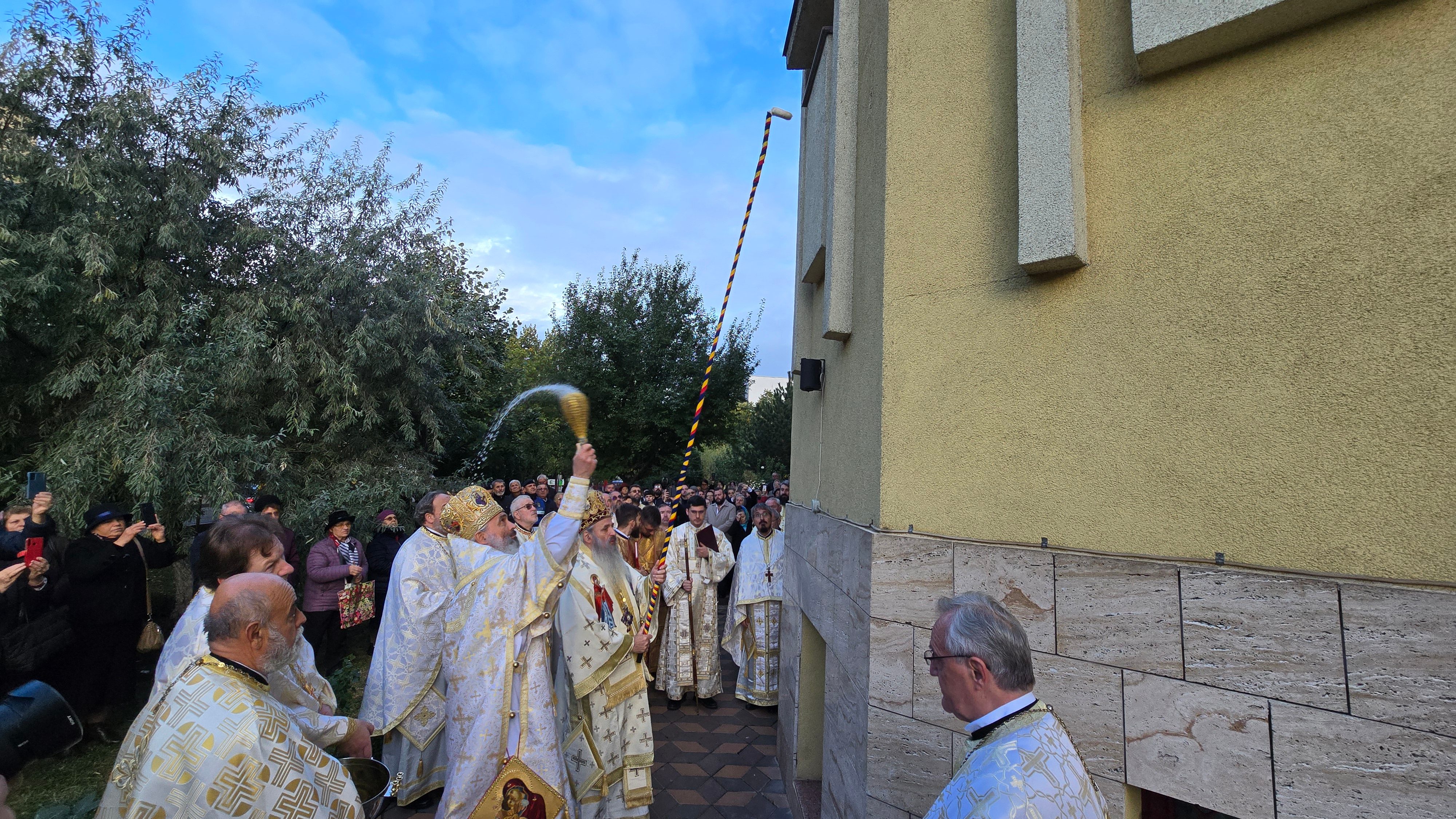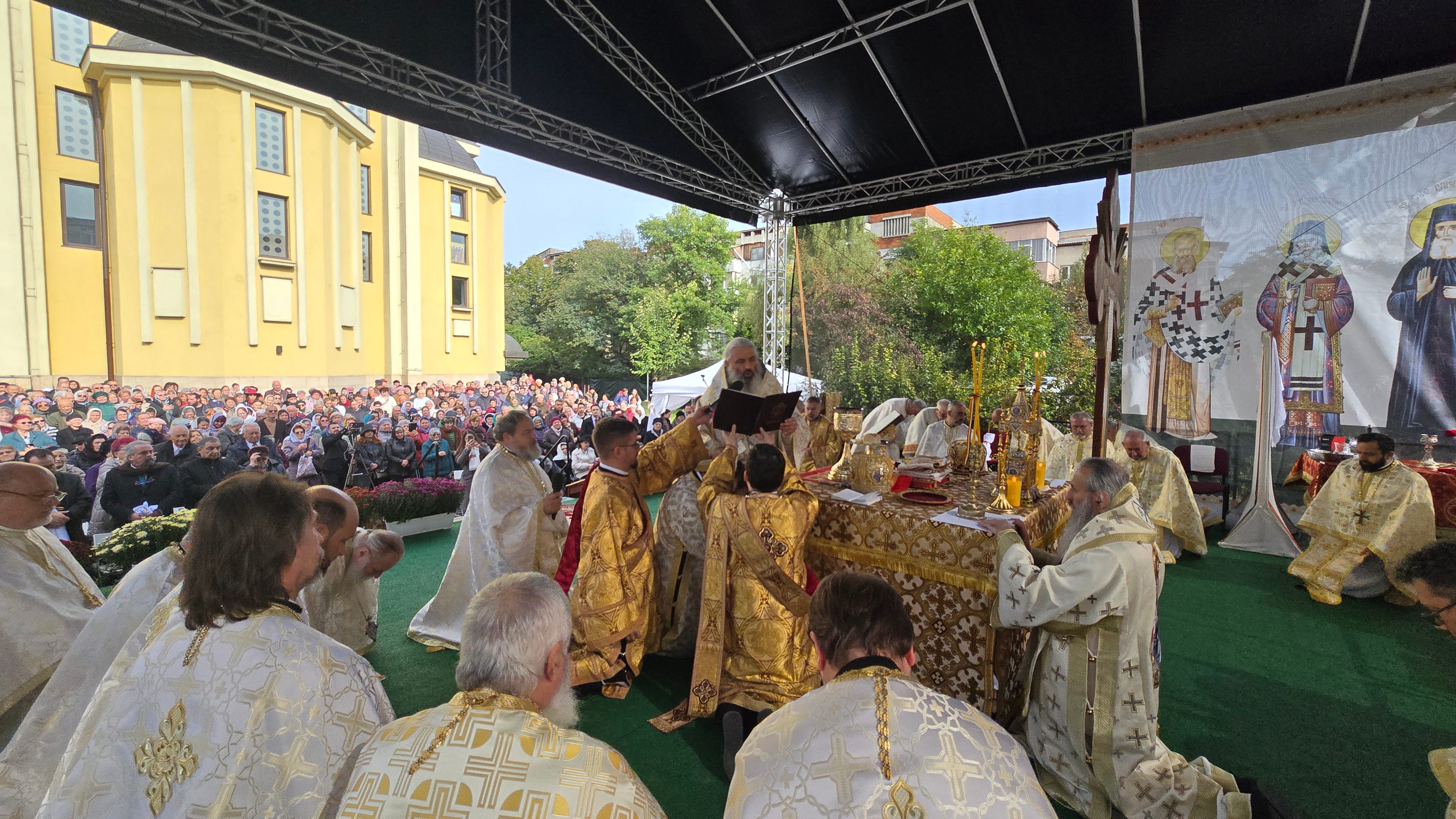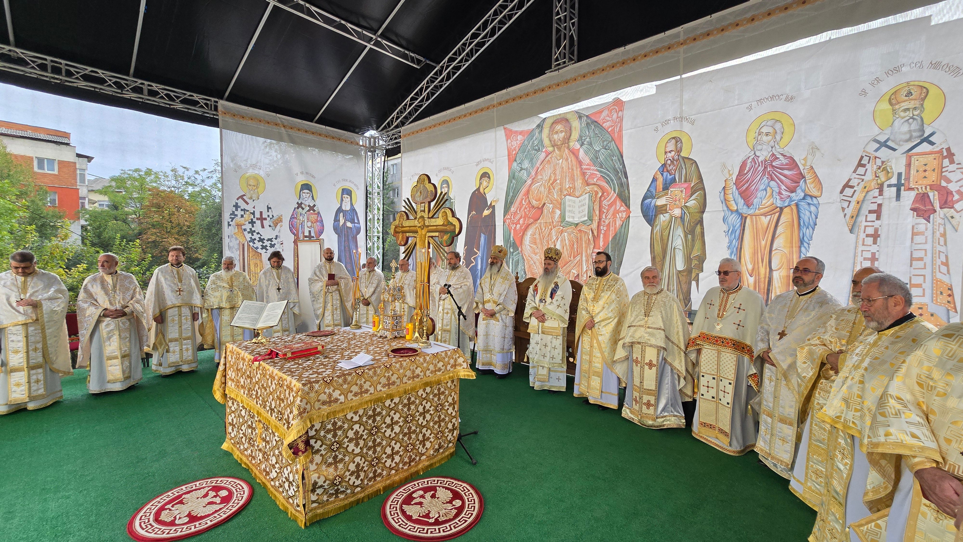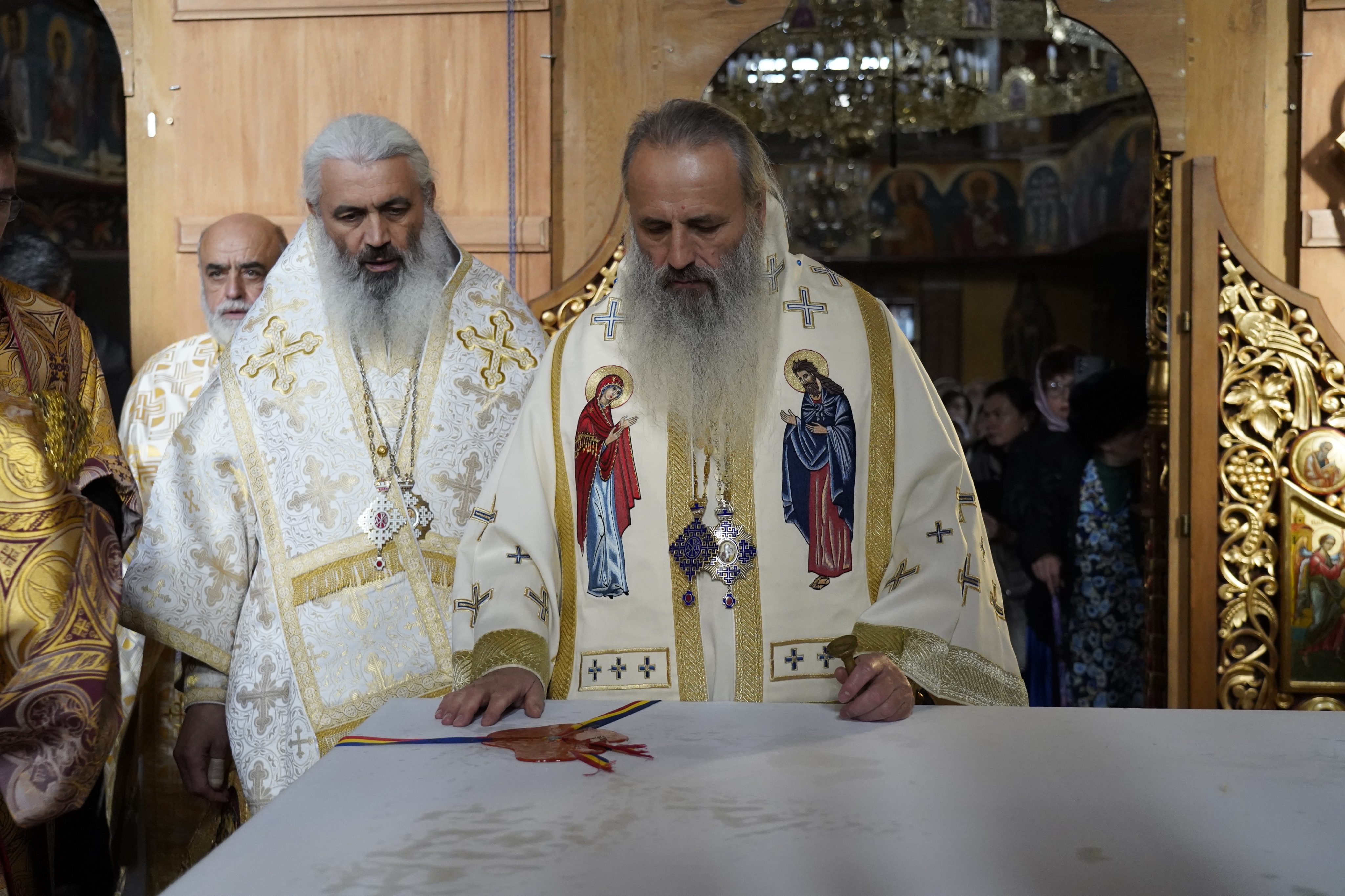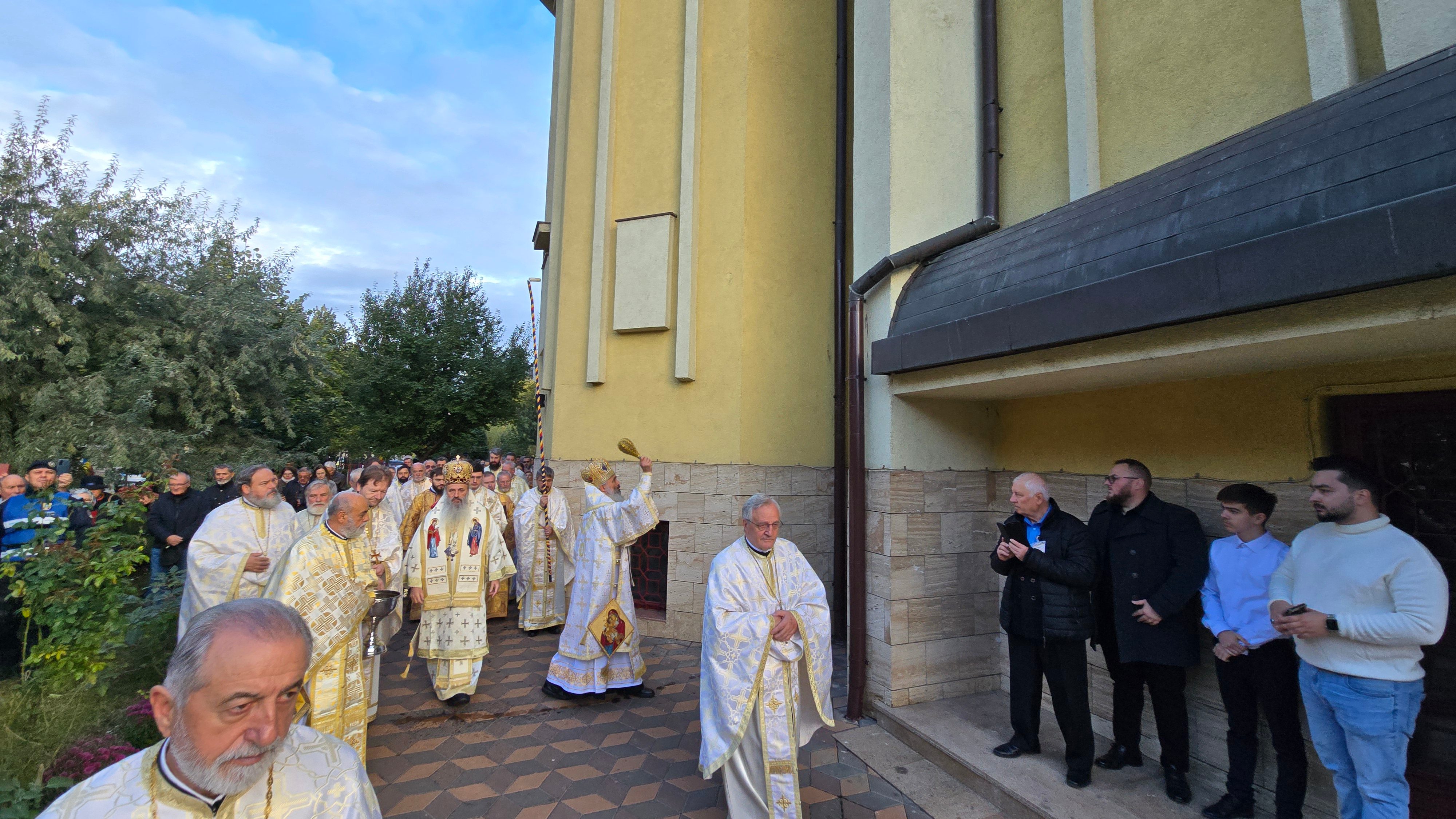 Evenimentul liturgic a fost oficiat de IPS Părinte Mitropolit Teofan și PS Părinte Episcop Antonie, care au binecuvântat prin ungere cu Sfântul și Marele Mir și prin stropire cu apă sfințită pereții exteriori ai bisericii, iar după înconjurarea lăcașului dimpreună cu credincioșii au sfințit și pecetluit Sfântul Altar, binecuvântând totodată catapeteasma și pictura interioară.
