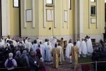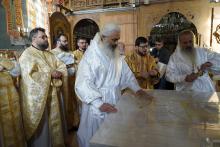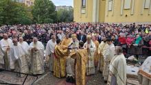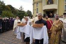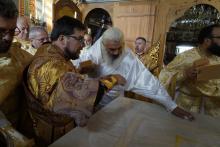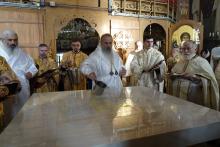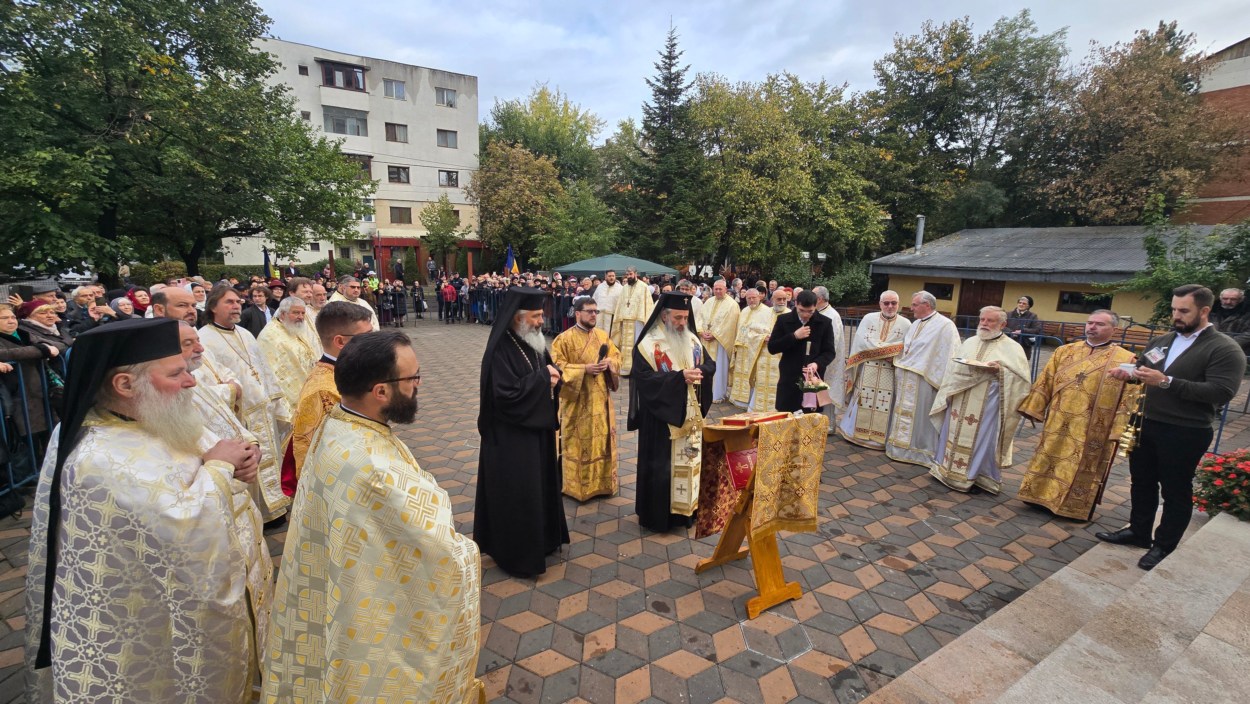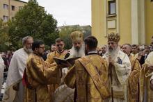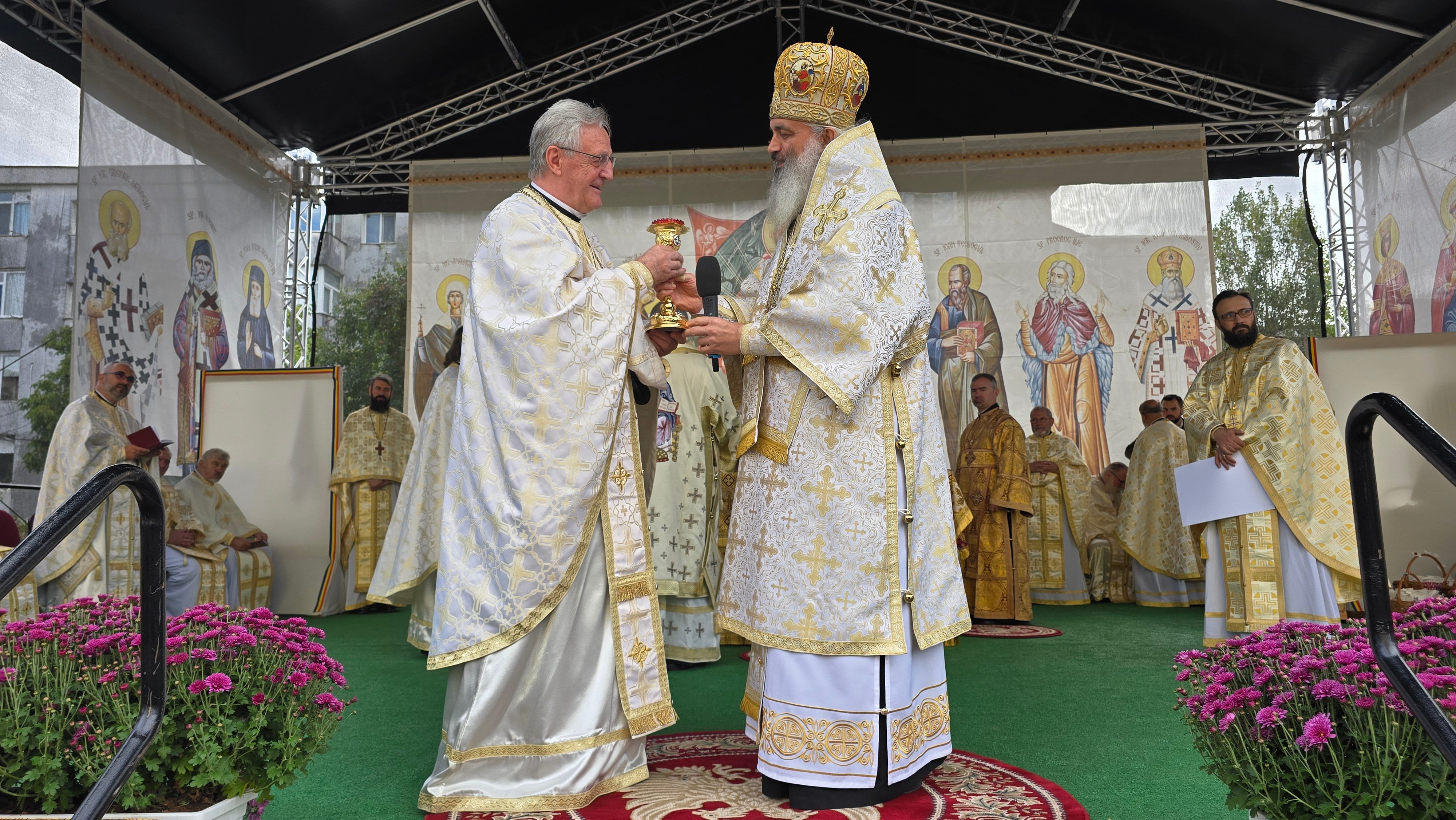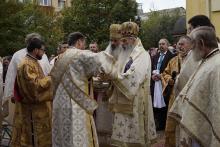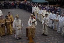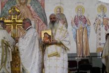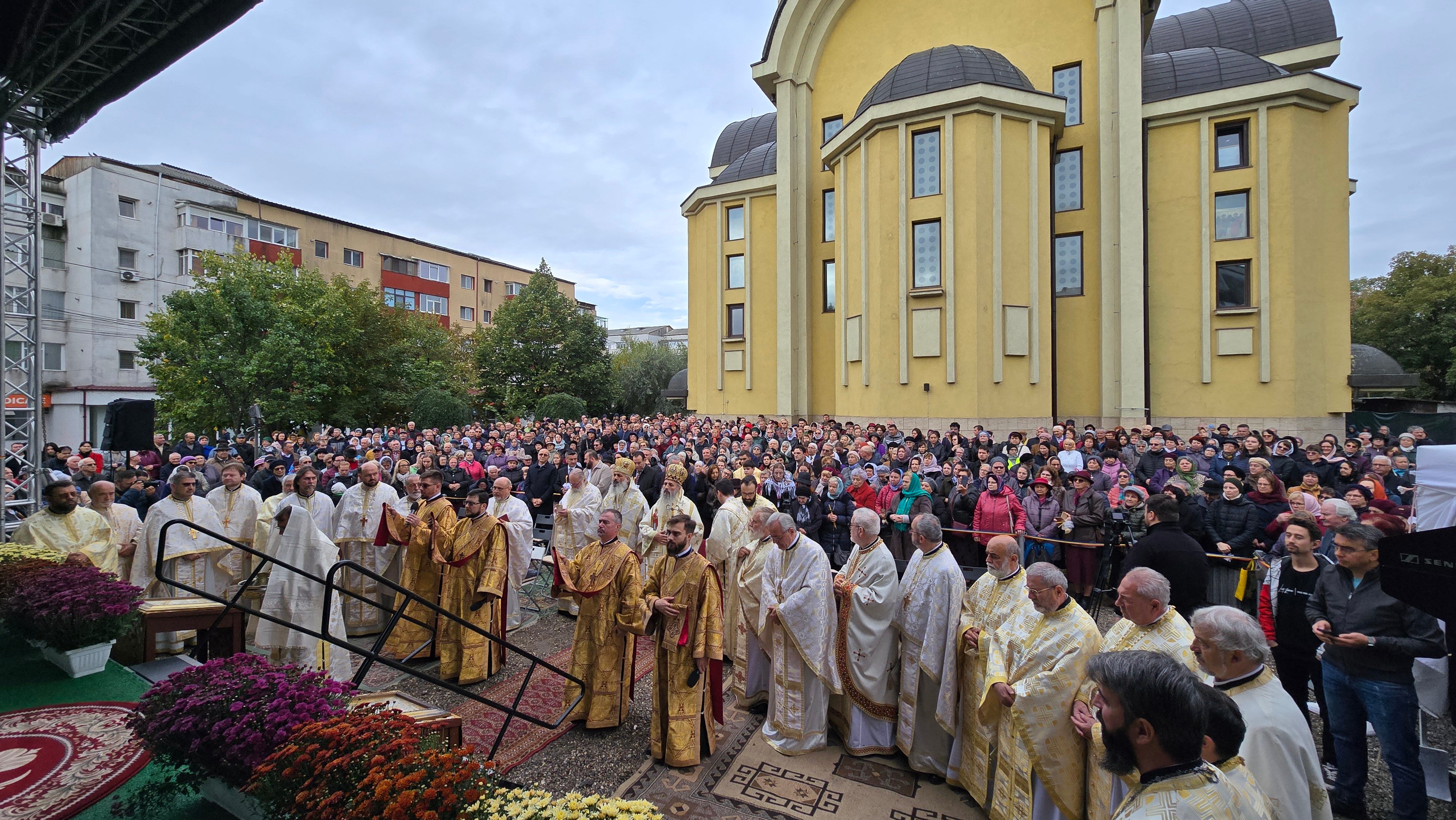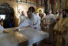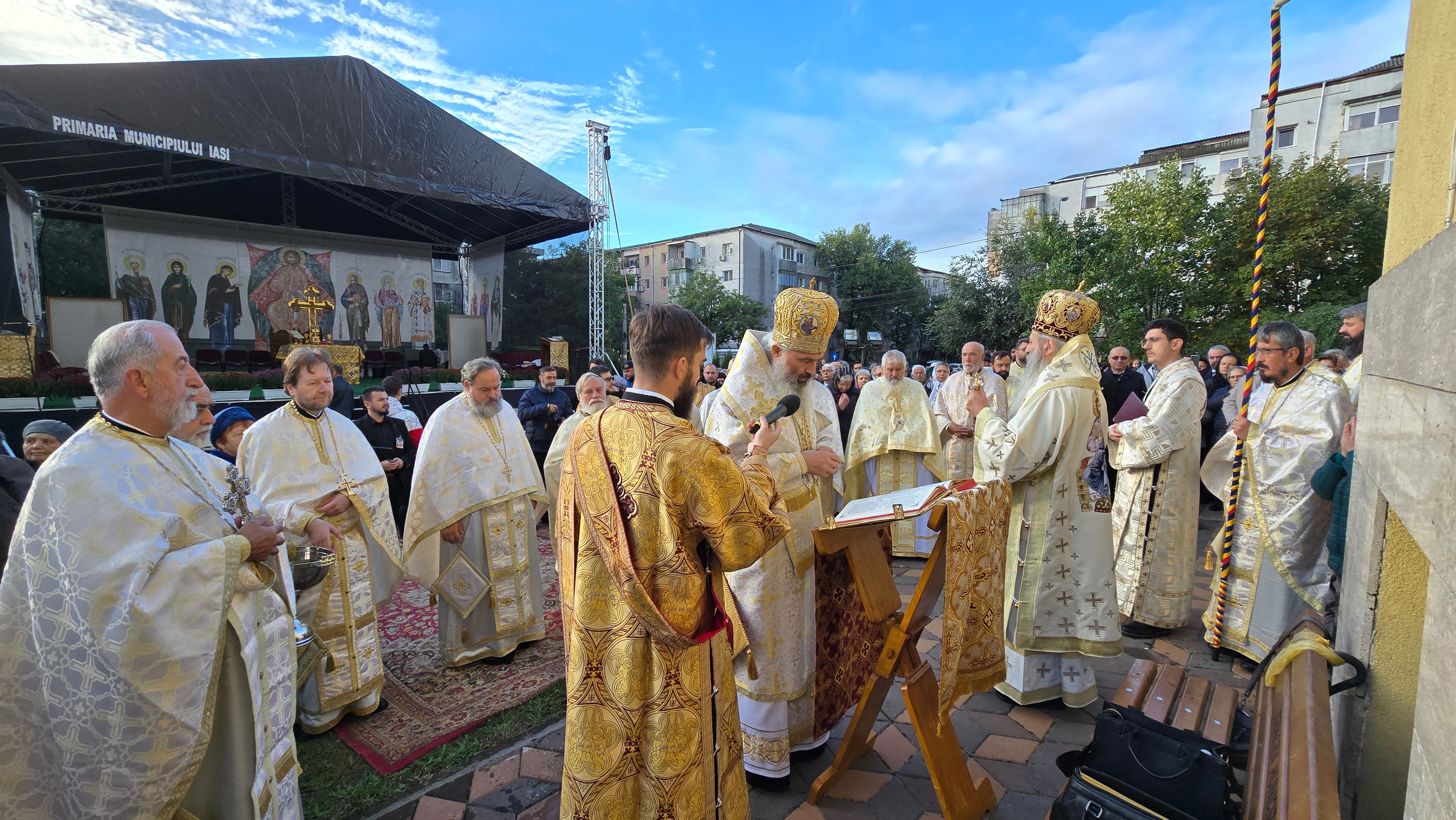 Evenimentul liturgic a fost oficiat de IPS Părinte Mitropolit Teofan și PS Părinte Episcop Antonie, care au binecuvântat prin ungere cu Sfântul și Marele Mir și prin stropire cu apă sfințită pereții exteriori ai bisericii, iar după înconjurarea lăcașului dimpreună cu credincioșii au sfințit și pecetluit Sfântul Altar, binecuvântând totodată catapeteasma și pictura interioară.
