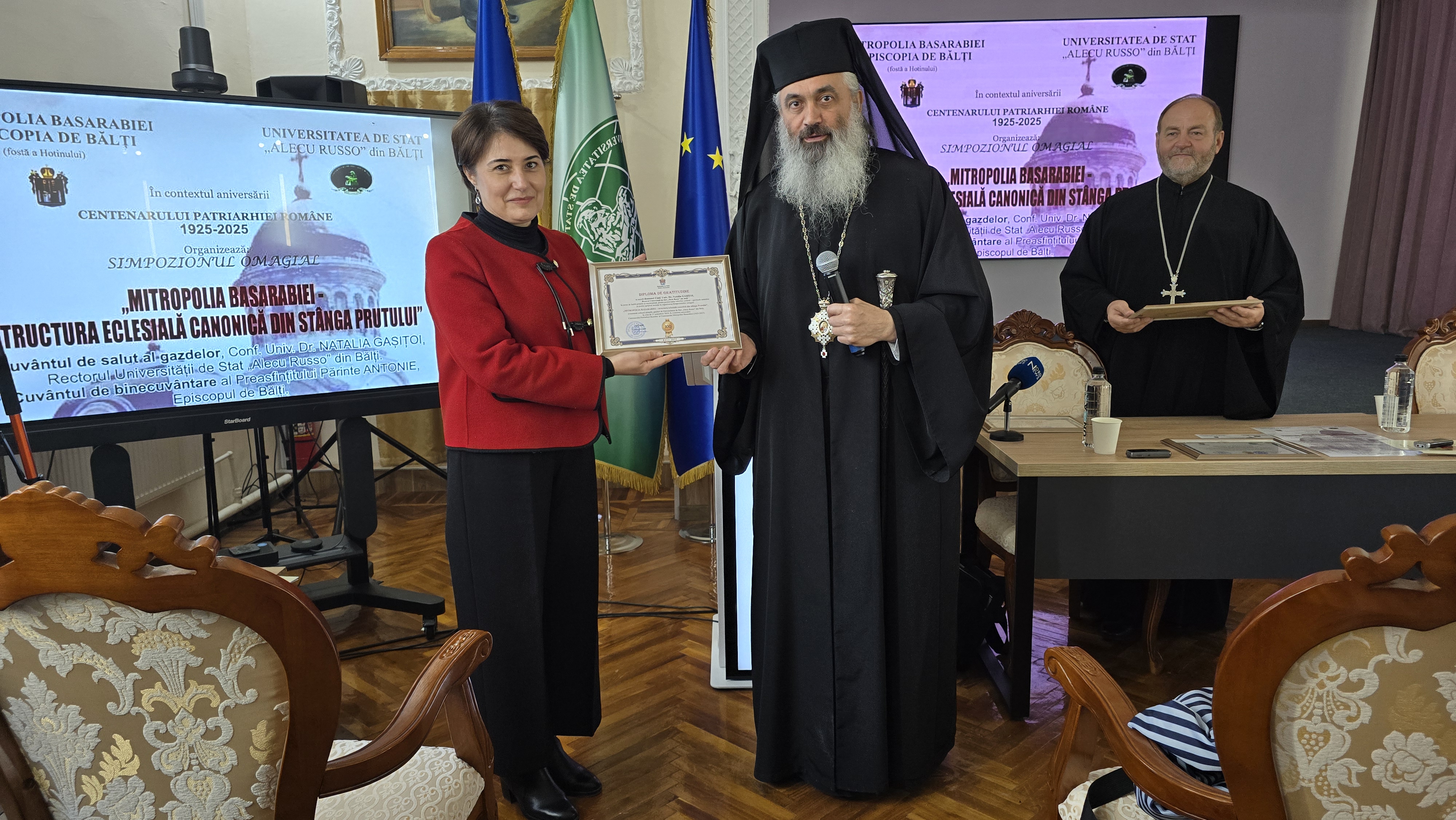 Marți, 21 octombrie 2025, în Sala Polivalentă a Universității de Stat ,,Alecu Russo” din Bălți (USARB), a avut loc, cu binecuvântarea și prezența Preasfințitului Părinte Antonie, Episcopul de Bălți, Simpozionul omagial: „Mitropolia Basarabiei- Structura eclesială canonică din stânga Prutului”. Manifestarea cultural – științifică a fost organizată de către Episcopia de Bălți și Universitatea de Stat „Alecu Russo” din Bălţi și s-a desfășurat în contextul Anului omagial dedicat Centenarului Patriarhiei Române (1925-2025) și Centenarul Mitropoliei Basarabiei.