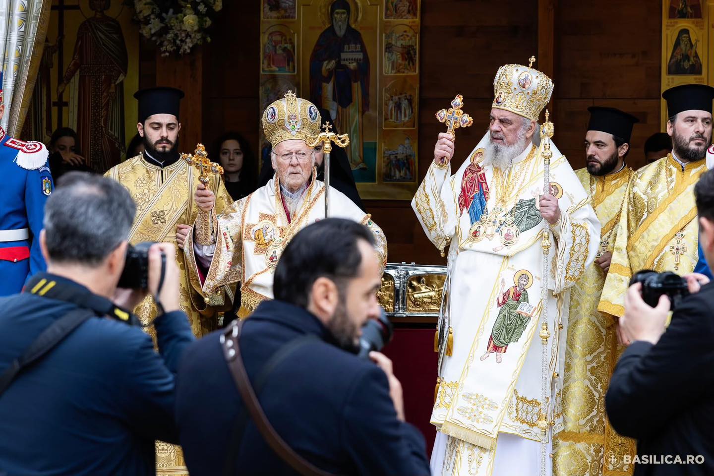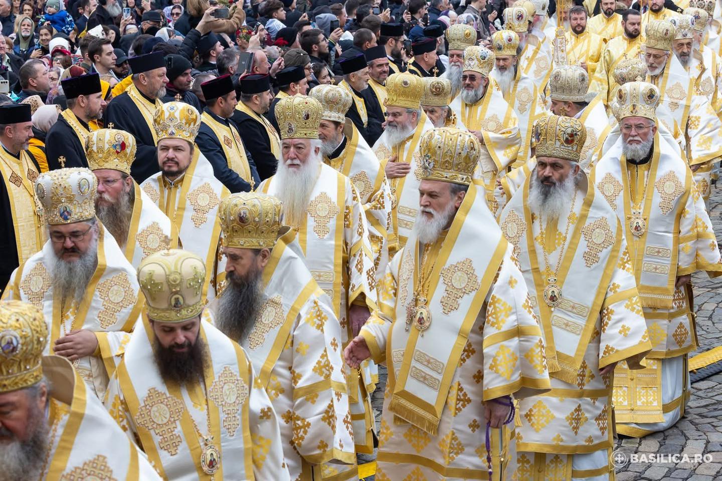 Împreună cu cei doi Patriarhi la Sfânta Liturghie au slujit ierarhii din delegaţia Patriarhiei Ecumenice şi membri ai Sfântului Sinod al Bisericii Ortodoxe Române: IPS Părinte Emanuel, Mitropolitul Calcedonului; IPS Părinte Atenagoras, Mitropolitul Belgiei; IPS Părinte Kiril, Mitropolit de Imvros și Tenedos; IPS Părinte Teofan, Mitropolitul Moldovei și Bucovinei; IPS Părinte Andrei, Mitropolitul Clujului, Maramureșului și Sălajului; IPS Părinte Irineu, Mitropolitul Olteniei; IPS Părinte Ioan, Mitropolitul Banatului; IPS Părinte Petru, Mitropolitul Basarabiei și Exarhul Plaiurilor; IPS Părinte Iosif, Mitropolitul ortodox român al Europei Occidentale și Meridionale; IPS Părinte Serafim, Mitropolitul ortodox român al Germaniei, Europei Centrale și de Nord; IPS Părinte Nicolae, Mitropolitul ortodox român al celor două Americi; IPS Părinte Nifon, Arhiepiscopul Târgoviștei, Exarh patriarhal și Mitropolit onorific; IPS Părinte Teodosie, Arhiepiscopul Tomisului; IPS Părinte Irineu, Arhiepiscopul Alba Iuliei; IPS Părinte Varsanufie, Arhiepiscopul Râmnicului; IPS Părinte Calinic, Arhiepiscopul Argeșului și Muscelului; IPS Părinte Ciprian, Arhiepiscopul Buzăului și Vrancei; IPS Părinte Casian, Arhiepiscopul Dunării de Jos; IPS Părinte Timotei, Arhiepiscopul Aradului; IPS Părinte Atanasie, Arhiepiscopul ortodox român al Marii Britanii și Irlandei de Nord; PS Părinte Ignatie, Episcopul Hușilor; PS Părinte Lucian, Episcopul Caransebeșului; PS Părinte Sofronie, Episcopul Oradiei; PS Părinte Iustin, Episcopul Maramureșului și Sătmarului; PS Părinte Nicodim, Episcopul Severinului și Strehaiei, PS Părinte Veniamin, Episcopul Basarabiei de Sud; PS Părinte Vincențiu, Episcopul Sloboziei și Călărașilor; PS Părinte Andrei, Episcopul Covasnei și Harghitei; PS Părinte Galaction, Episcopul Alexandriei și Teleormanului; PS Părinte Ambrozie, Episcopul Giurgiului; PS Părinte Visarion, Episcopul Tulcii; PS Părinte Benedict, Episcopul Sălajului; PS Părinte Nestor, Episcopul Devei și Hunedoarei; PS Părinte Ieronim, Episcopul Daciei Felix; PS Părinte Siluan, Episcopul ortodox român al Ungariei; PS Părinte Siluan, Episcopul ortodox român al Italiei; PS Părinte Timotei, Episcopul ortodox român al Spaniei și Portugaliei; PS Părinte Macarie, Episcopul ortodox român al Europei de Nord; PS Părinte Mihail, Episcopul ortodox român al Australiei și Noii Zeelande; PS Părinte Ioan Casian, Episcopul ortodox român al Canadei; PS Părinte Nectarie, Episcopul ortodox român al Irlandei și Islandei; PS Părinte Varlaam Ploieșteanul, Episcop-vicar patriarhal; PS Părinte Paisie Sinaitul, Episcop-vicar patriarhal; PS Părinte Timotei Prahoveanul, Episcop-vicar al Arhiepiscopiei Bucureștilor; PS Părinte Nichifor Botoșăneanul, Episcop-vicar al Arhiepiscopiei Iașilor; PS Părinte Ilarion Făgărășanul, Episcop-vicar al Arhiepiscopiei Sibiului; PS Părinte Samuel Bistrițeanul, Episcop-vicar al Arhiepiscopiei Vadului, Feleacului și Clujului; PS Părinte Paisie Lugojeanul, Episcop-vicar al Arhiepiscopiei Timișoarei; PS Părinte Nectarie de Bogdania, Episcop-vicar al Arhiepiscopiei Chișinăului; PS Părinte Sofian Brașoveanul, Episcop-vicar al Arhiepiscopiei Ortodoxe Române a Germaniei, Austriei și Luxemburgului; PS Părinte Damaschin Dorneanul, Episcop-vicar al Arhiepiscopiei Sucevei și Rădăuților; PS Părinte Teofil Trotușanul, Episcop-vicar al Arhiepiscopiei Romanului și Bacăului; PS Părinte Emilian Crișanul, Episcop-vicar al Arhiepiscopiei Aradului; PS Părinte Timotei Sătmăreanul, Arhiereu-vicar al Episcopiei Ortodoxe Române a Maramureșului și Sătmarului; PS Părinte Gherontie Hunedoreanul, Arhiereu-vicar al Episcopiei Devei și Hunedoarei; PS Părinte Teofil de Iberia, Arhiereu-vicar al Episcopiei Ortodoxe Române a Spaniei și Portugaliei.