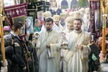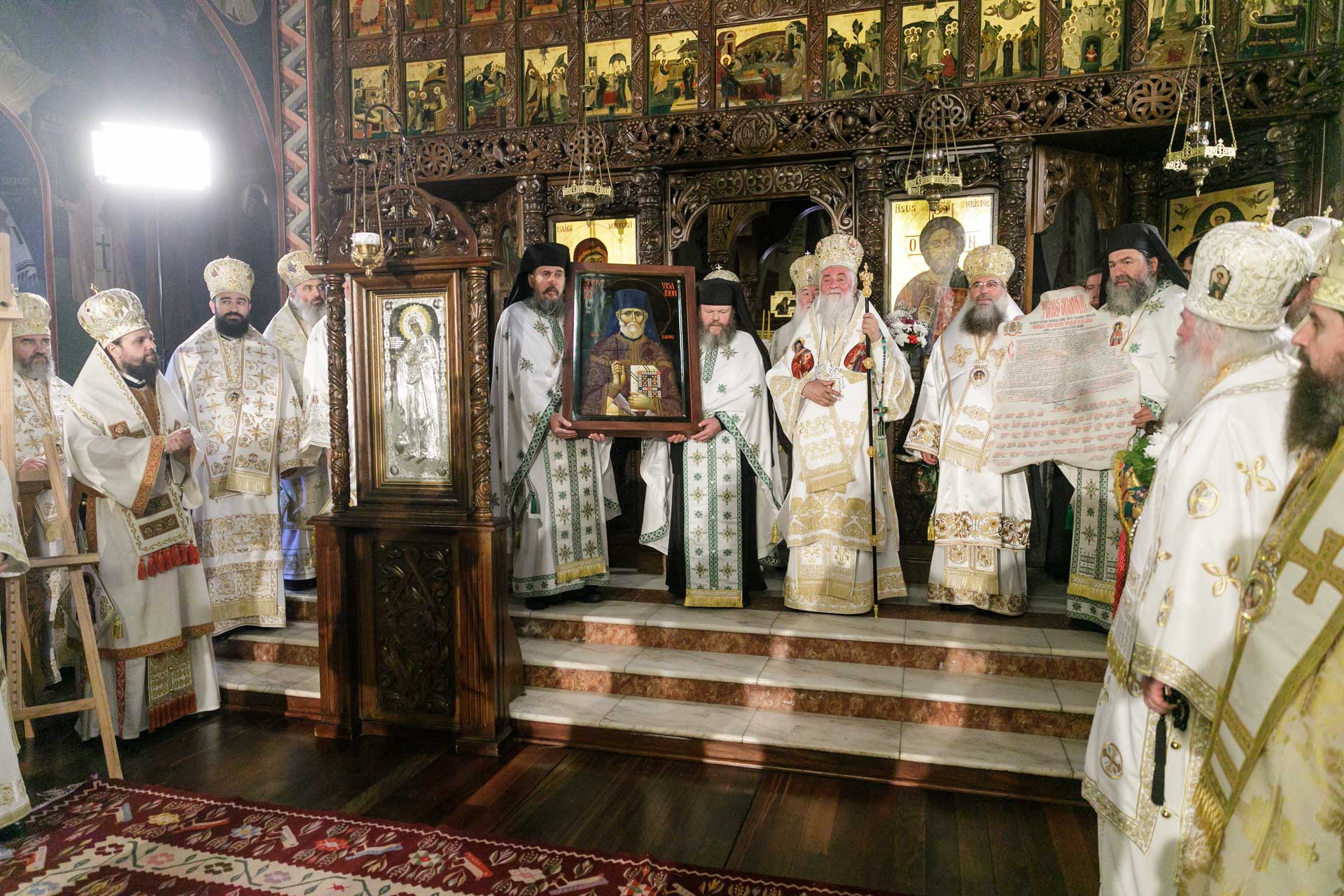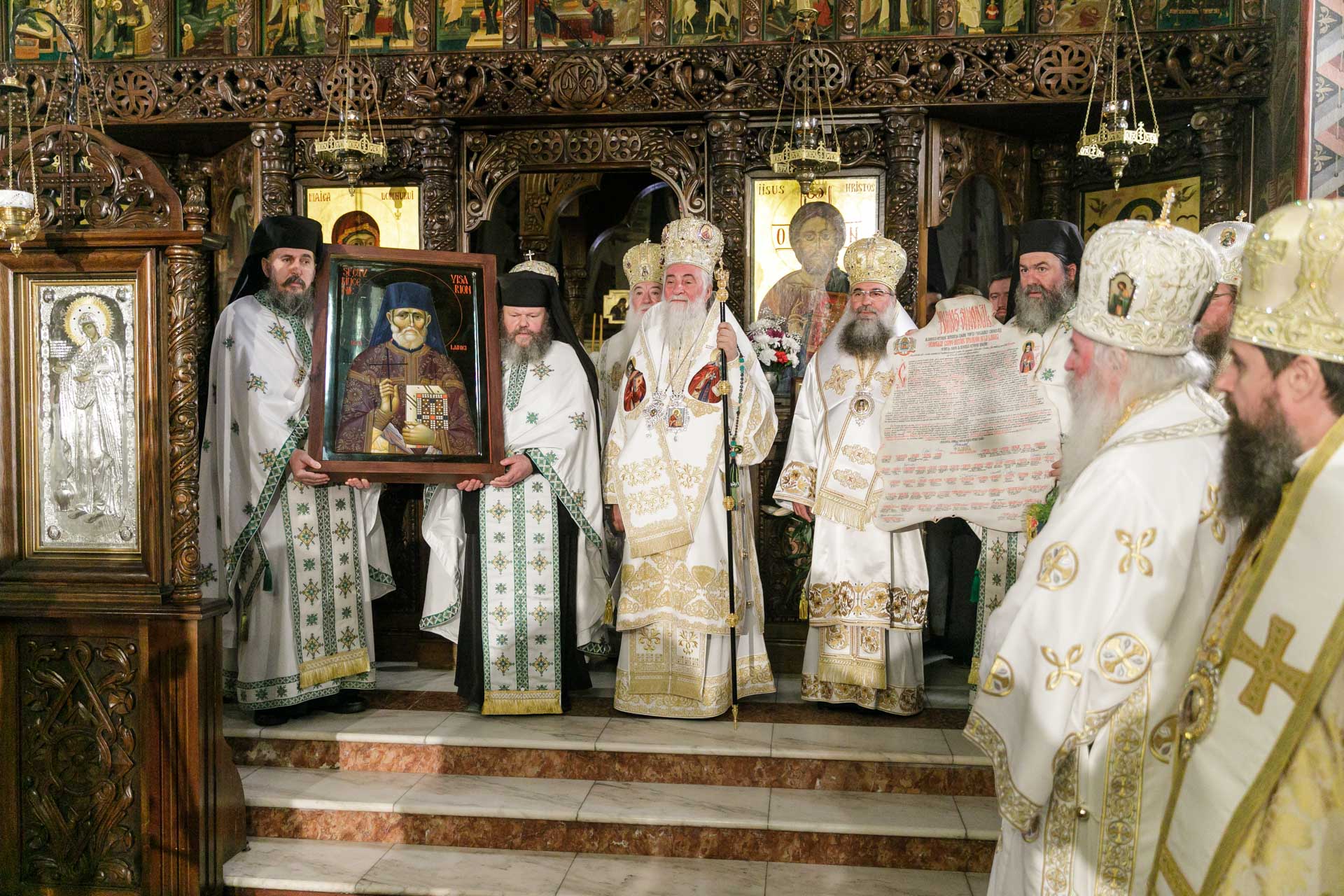 Ziua de sărbătoare a început cu Sfânta Liturghie săvârșită de IPS Părinte Irineu, Mitropolitul Olteniei, împreună cu IPS Părinte Ioan, Mitropolitul Banatului, IPS Părinte Varsanufie, Arhiepiscopul Râmnicului, PS Părinte Lucian, Episcopul Caransebeșului, PS Părinte Nicodim, Episcopul Severinului și Strehaiei, PS Părinte Antonie, Episcopul de Bălți, PS Părinte Sebastian, Episcopul Slatinei și Romanaților, PS Părinte Andrei, Episcopul Covasnei și Harghitei, PS Părinte Benedict, Episcopul Sălajului, PS Părinte Nestor, Episcopul Devei și Hunedoarei, PS Părinte Teofil Trotușanul, Episcop-vicar al Arhiepiscopiei Romanului și Bacăului, şi PS Părinte Gherontie Hunedoreanul, Arhiereu-vicar al Episcopiei Devei și Hunedoarei. Alături de ierarhii Sfântului Sinod, la eveniment au participat numeroși stareți și starețe de la mănăstirile din ţara noastră, clerici, monahi, monahii și credincioși, veniți să aducă cinstire noului sfânt mucenic al neamului românesc.