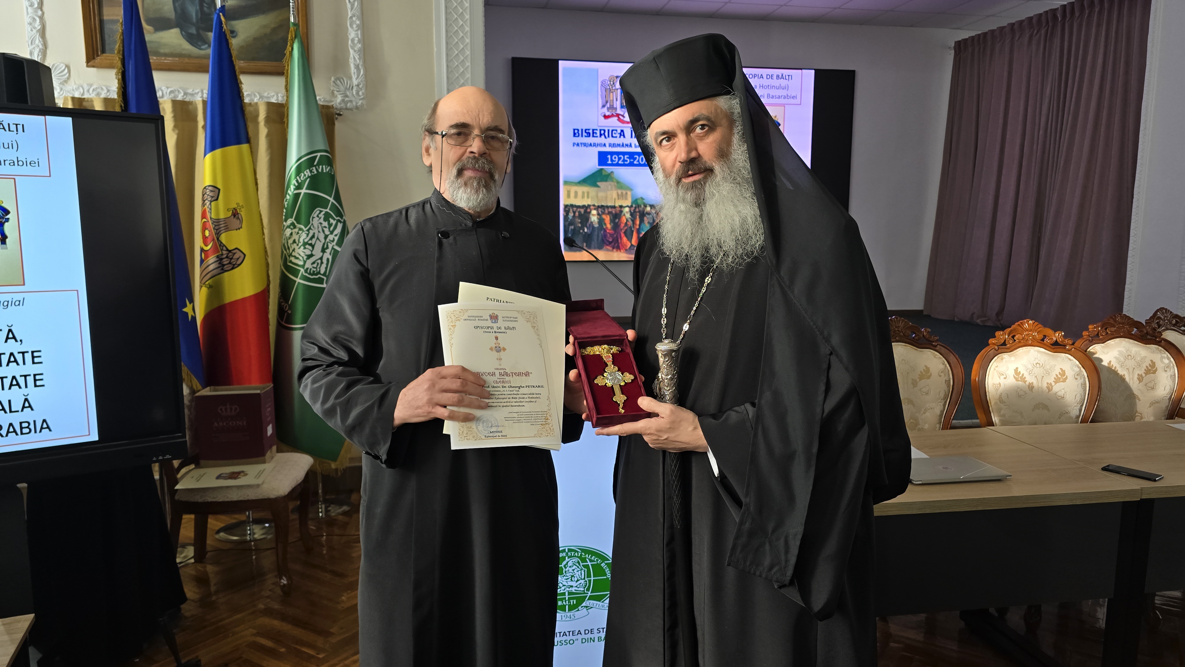 Pentru susținerea activităților Episcopiei de Bălți, Pr. Lect. Univ. Dr. Florin Țuscanu, Pr. Prof. Univ. Dr. Gheorghe Petraru și Pr. Prof. Univ. Dr. Vasile Nechita au foat gratificați, de către PS Antonie, cu cea mai înaltă distincție a Episcopiei de Bălți pentru clerici „Crucea Bălțeană”.