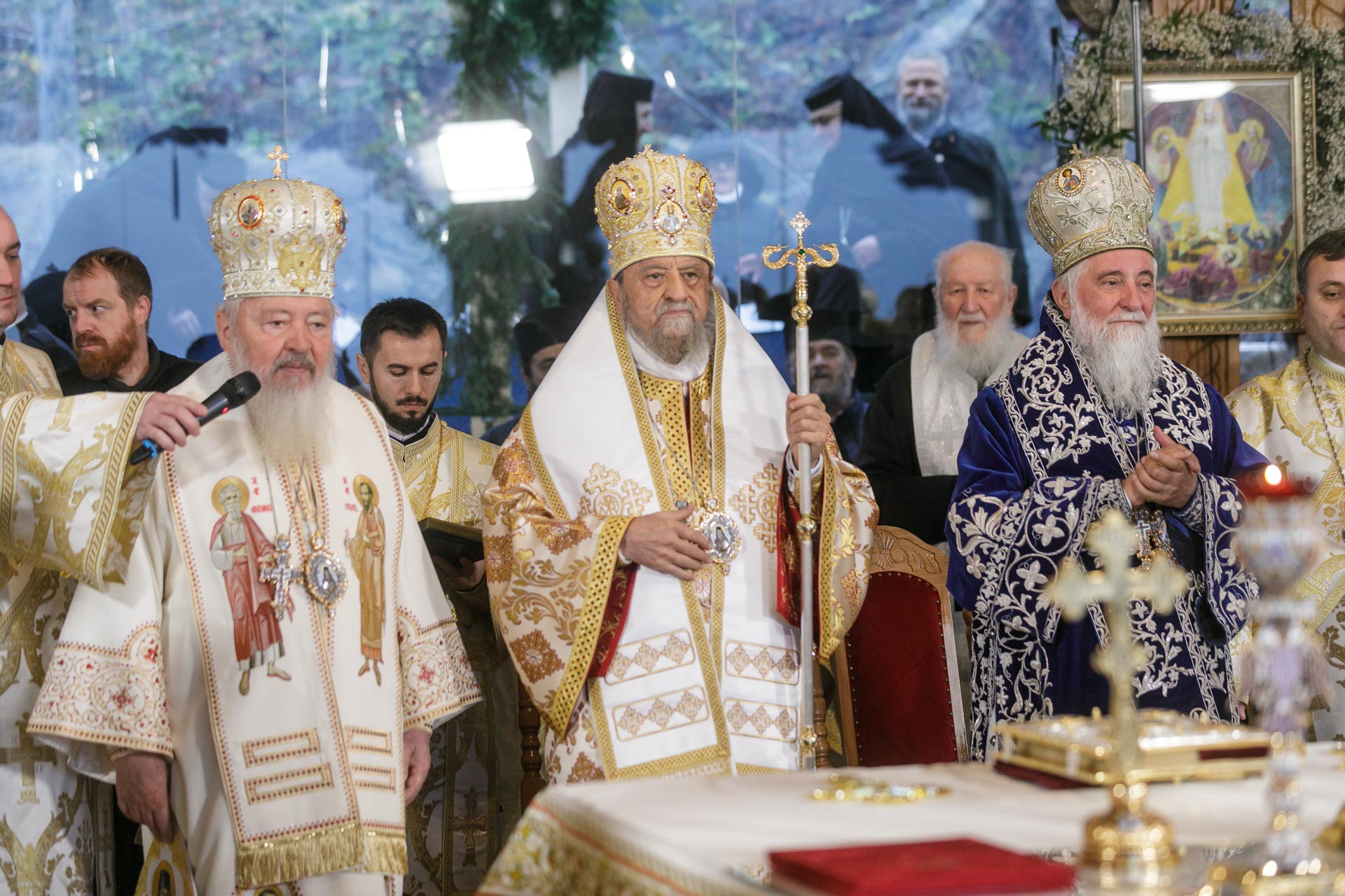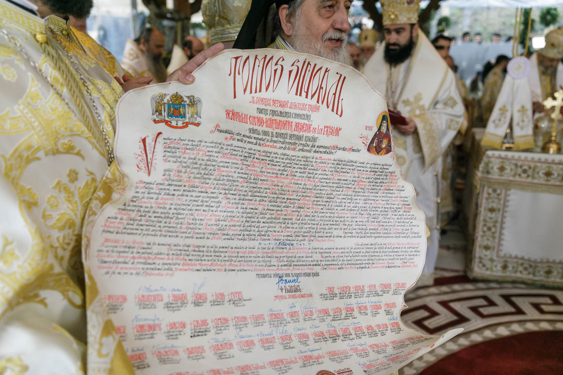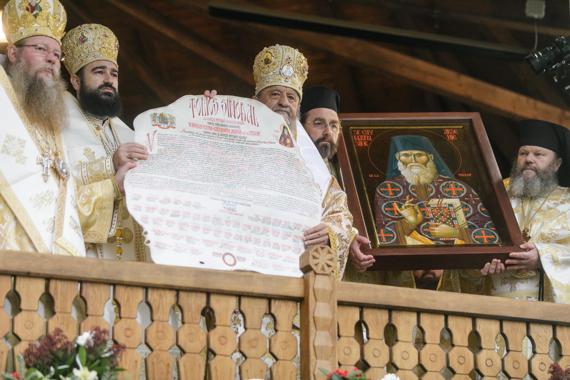 În soborul arhiereilor s‑au aflat Înaltpreasfinţitul Părinte Laurenţiu, Arhiepiscopul Sibiului şi Mitropolitul Ardealului, Înaltpreasfinţitul Părinte Andrei, Arhiepiscopul Vadului, Feleacului şi Clujului şi Mitropolitul Clujului, Maramureşului şi Sălajului, Înaltpreasfinţitul Părinte Irineu, Arhiepiscopul Craiovei şi Mitropolitul Olteniei, Înaltpreasfinţitul Părinte Varsanufie, Arhiepiscopul Râmnicului, Înaltpreasfinţitul Părinte Atanasie, Arhiepiscop ortodox român al Marii Britanii şi Irlandei de Nord, Preasfinţitul Părinte Ignatie, Episcopul Huşilor, Preasfinţitul Părinte Lucian, Episcopul Caransebeşului, Preasfinţitul Părinte Nicodim, Episcopul Severinului şi Strehaiei, Preasfinţitul Părinte Antonie, Episcopul de Bălţi, Preasfinţitul Părinte Veniamin, Episcopul Basarabiei de Sud, Preasfinţitul Părinte Andrei, Episcopul Covasnei şi Harghitei, Preasfinţitul Părinte Galaction, Episcopul Alexandriei şi Teleormanului, Preasfinţitul Părinte Sebastian, Episcopul Slatinei şi Romanaţilor, Preasfinţitul Părinte Visarion, Episcopul Tulcii, Preasfinţitul Părinte Benedict, Episcopul Sălajului, Preasfinţitul Părinte Nestor, Episcopul Devei şi Hunedoarei, Preasfinţitul Părinte Ieronim, Episcopul Daciei Felix, Preasfinţitul Părinte Siluan, Episcop ortodox român al Ungariei, Preasfinţitul Părinte Siluan, Episcop ortodox român al Italiei, Preasfinţitul Părinte Timotei, Episcop ortodox român al Spaniei şi Portugaliei, Preasfinţitul Părinte Macarie, Episcop ortodox român al Europei de Nord, Preasfinţitul Părinte Nectarie, Episcop ortodox român al Irlandei şi Islandei, Preasfinţitul Părinte Ilarion Făgărăşanul, Episcopul‑vicar al Arhiepiscopiei Sibiului, Preasfinţitul Părinte Paisie Lugojanul, Episcopul‑vicar al Arhiepiscopiei Timişoarei, Preasfinţitul Părinte Teofil Trotuşanul, Episcopul‑vicar al Arhiepiscopiei Romanului şi Bacăului, Preasfinţitul Părinte Emilian Crişanul, Episcopul‑vicar al Arhiepiscopiei Aradului, Preasfinţitul Părinte Timotei Sătmăreanul, Arhiereul‑vicar al Episcopiei Maramureşului şi Sătmarului şi Preasfinţitul Părinte Gherontie Hunedoreanul, Arhiereul‑vicar al Episcopiei Devei şi Hunedoarei. De asemenea, a fost prezent la Sfânta Liturghie şi ceremonia de proclamare a canonizării şi Preasfinţitul Părinte Daniil Stoenescu.