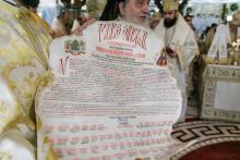 Tomosul sinodal prin care ierarhii Bisericii Ortodoxe Române au hotărât canonizarea Sfântului Cuvios Mărturisitor Arsenie de la Prislop a fost citit de Preasfinţitul Părinte Episcop Andrei, iar mai apoi a fost prezentat credincioşilor, împreună cu icoana sfântului. A urmat cuvântul de binecuvântare al Înaltpreasfinţitului Părinte Mitropolit Laurenţiu, care a mulţumit Preafericitului Părinte Daniel, Patriarhul Bisericii Ortodoxe Române, şi tuturor ierarhilor români pentru darul duhovnicesc oferit clerului şi credincioşilor din Transilvania de a trece în rândul sfinţilor pe marele duhovnic şi mărturisitor Arsenie Boca. Înaltpreasfinţia Sa a reamintit în cuvânt mărturiile numeroase date de preoţi şi credincioşi de‑a lungul celor 36 de ani de la trecerea în veşnicie a Sfântului Arsenie despre minunile săvârşite de marele duhovnic, între care şi vindecarea de neputinţe trupeşti a preotului Dănuţ Suciu, slujitor în San Antonio, Texas, prin rugăciunile închinate Sfântului Arsenie la mormântul acestuia de la Prislop. Preotul Dănuţ Suciu a fost prezent la sărbătoarea proclamării canonizării Sfântului Arsenie şi a întărit mărturia sa despre minunea săvârşită de Sfântul Arsenie într‑un moment în care medicina s‑a arătat neputincioasă în faţa cumplitei suferinţe.
