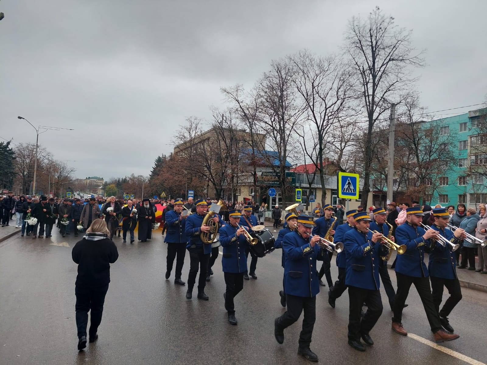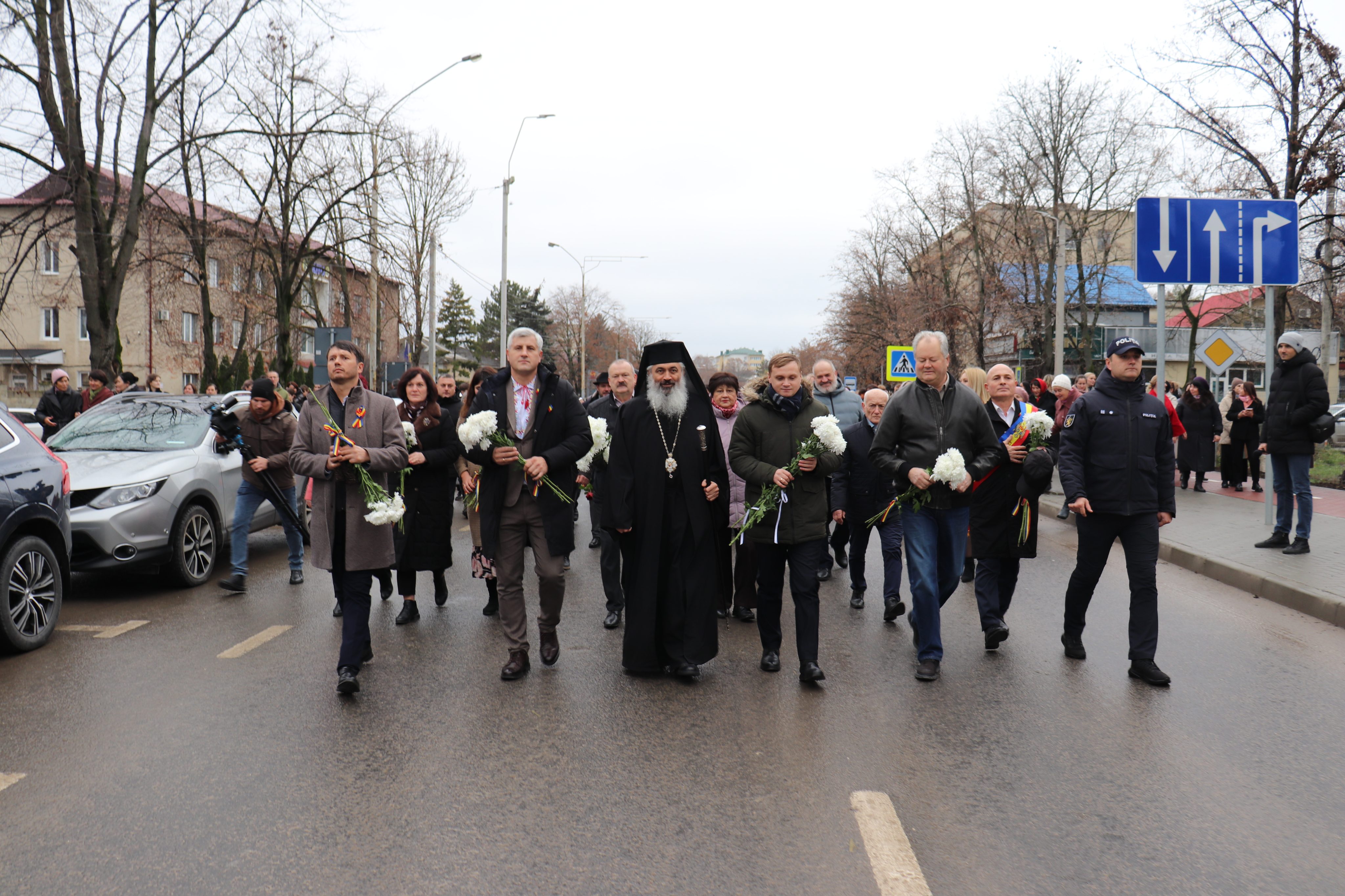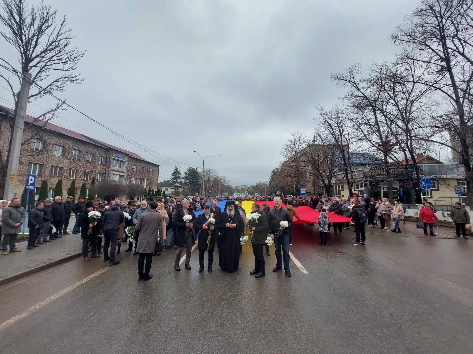 Evenimentul a debutat cu un marș, pe artera principală a municipiului, la care au participat zeci de locuitori și reprezentanți ai autorităților publice locale și centrale, purtând un tricolor imens de o lungime de 30 de metri şi o lăţime de 9 metri, tricolor care a fost sfințit, la Sângerei, în ziua de 1 decembrie 2021, de către PS Antonie.