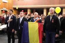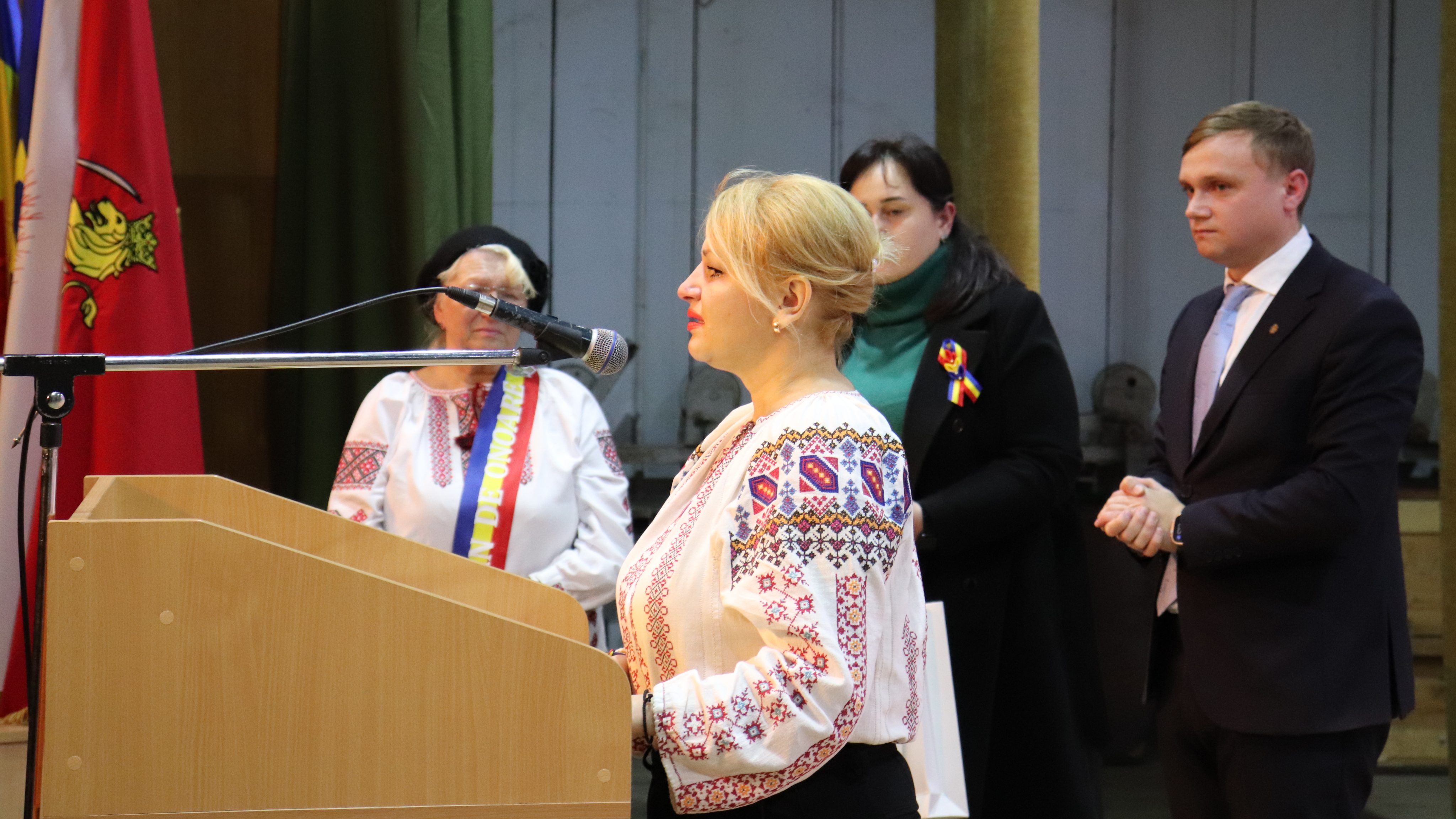 În fața celor prezenți, cuvinte de felicitare, cu ocazia Zilei Naționale a României, au rostit: dl Arcadie Covaliov, primarul orașului Sângerei, dl Cristian Cainarean, președintele raionului Sângerei, dl Gheorghe Ichim, deputat în Parlamentul R. Modova, dl Igor Curca, șef adjunct Oficiul Teritorial Bălți, Cancelaria de Stat, dl consilier Ion Galus, ș.a.