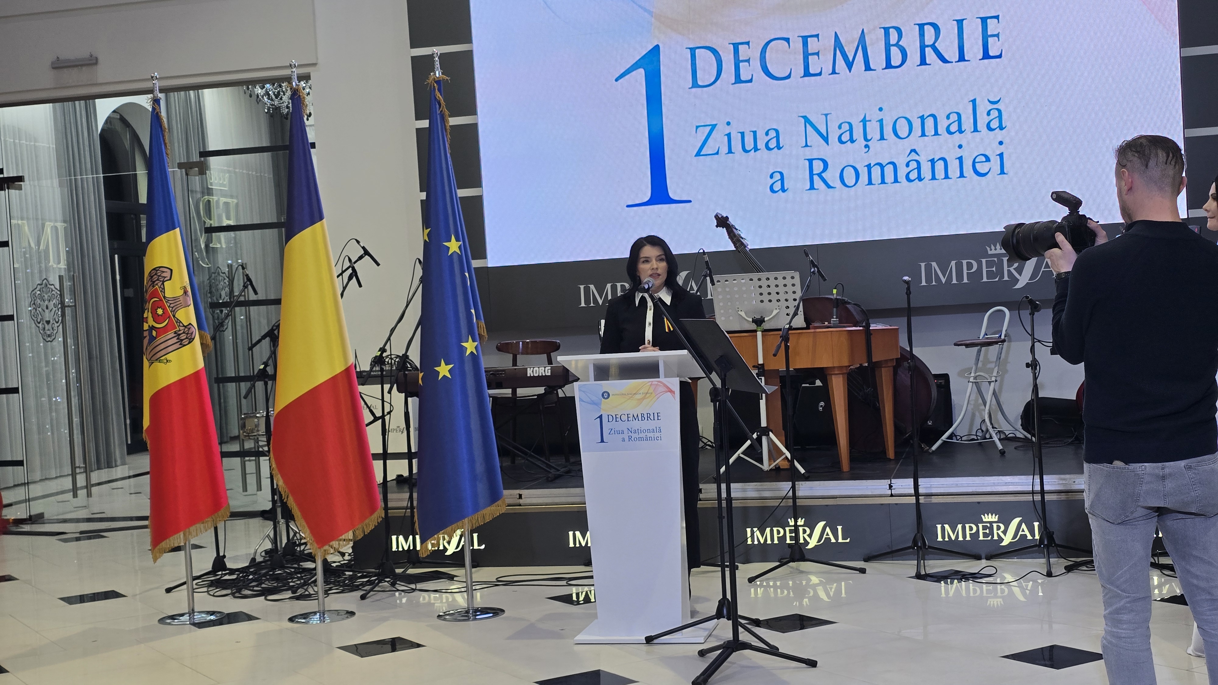 Doamna Alina Elenoiu, gerantul interimar al Consulatului General al României la Bălți, în cuvântul său de felicitare a reliefat semnificația Zilei Naționale a României pentru poporul român, aderarea R. Moldova la Uniunea Europeană și sprijinul venit din partea României în acest parcurs.