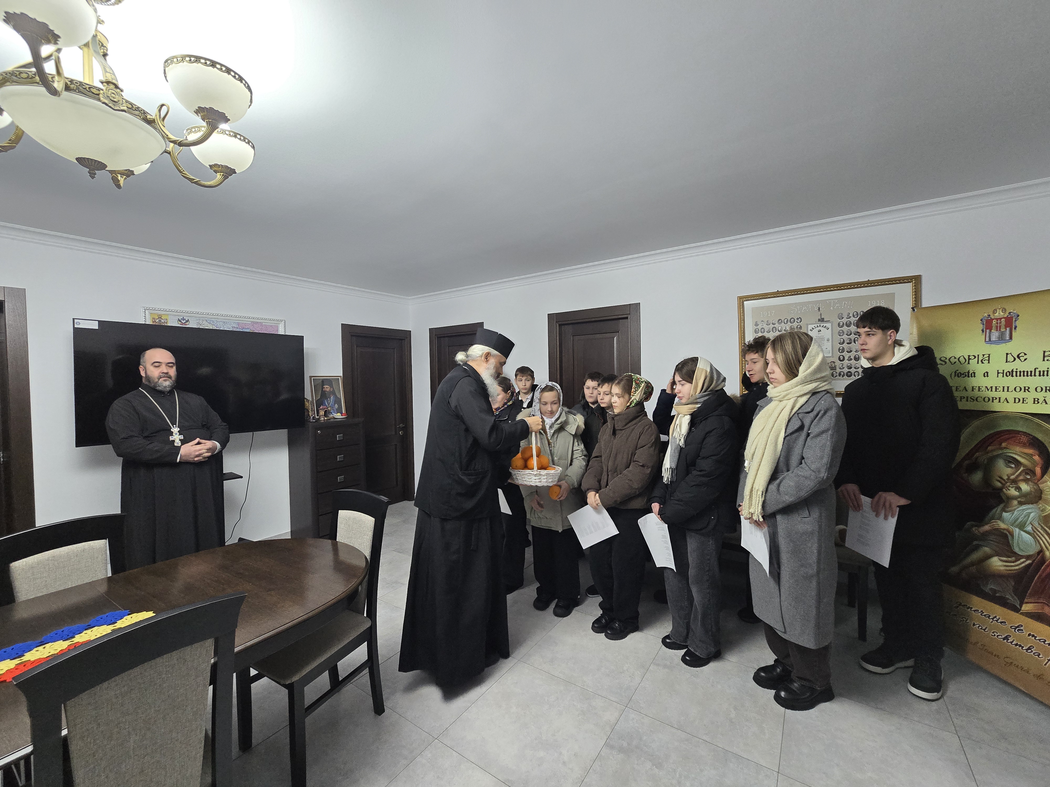 PS Antonie a împărţit colindătorilor colaci, crăciunei, dulciuri, mere, cărți de rugăciune, cărţi cu conţinut duhovnicesc şi i-a invitat să mai vină pe la sediul episcopal şi altă dată.