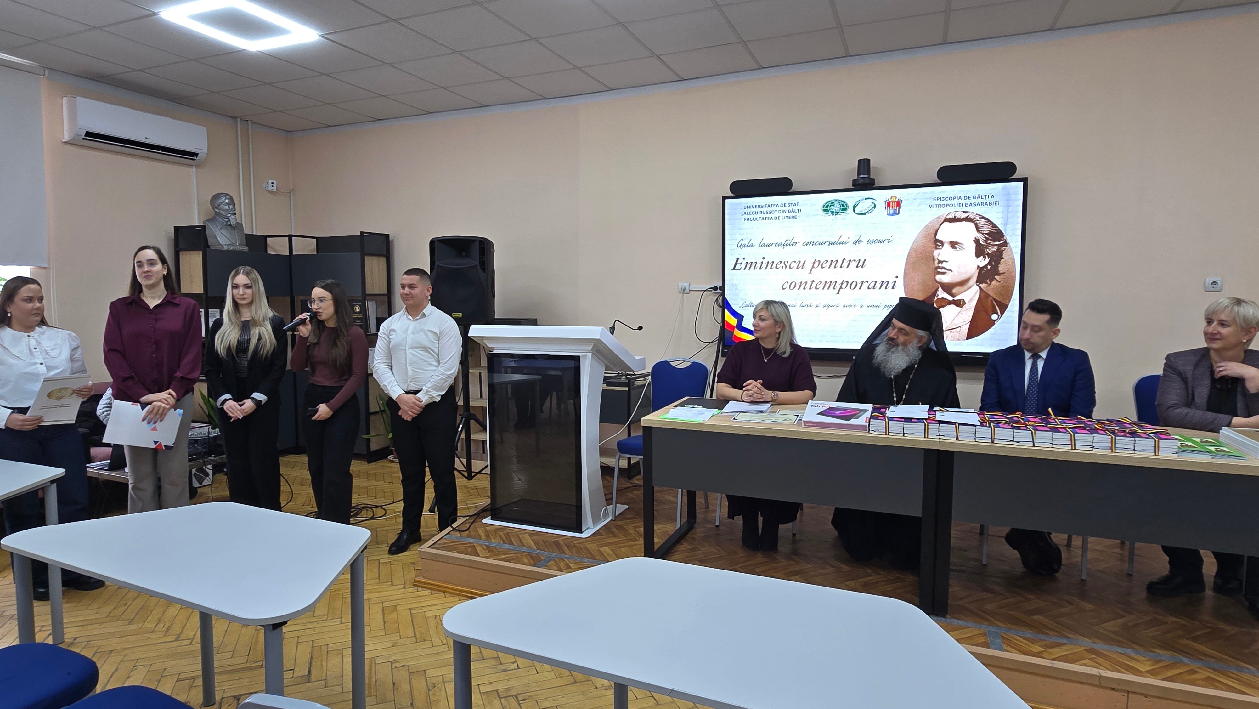 Joi, 15 ianuarie 2026, de Ziua Națională a Culturii și la împlinirea a 176 de ani de la nașterea marelui poet național Mihai Eminescu, la Universitatea de Stat „Alecu Russo” din Bălți a avut loc Gala laureaților Concursului de eseu la Limba și Literatura Română, ediția a II-a, „Eminescu pentru contemporani”.