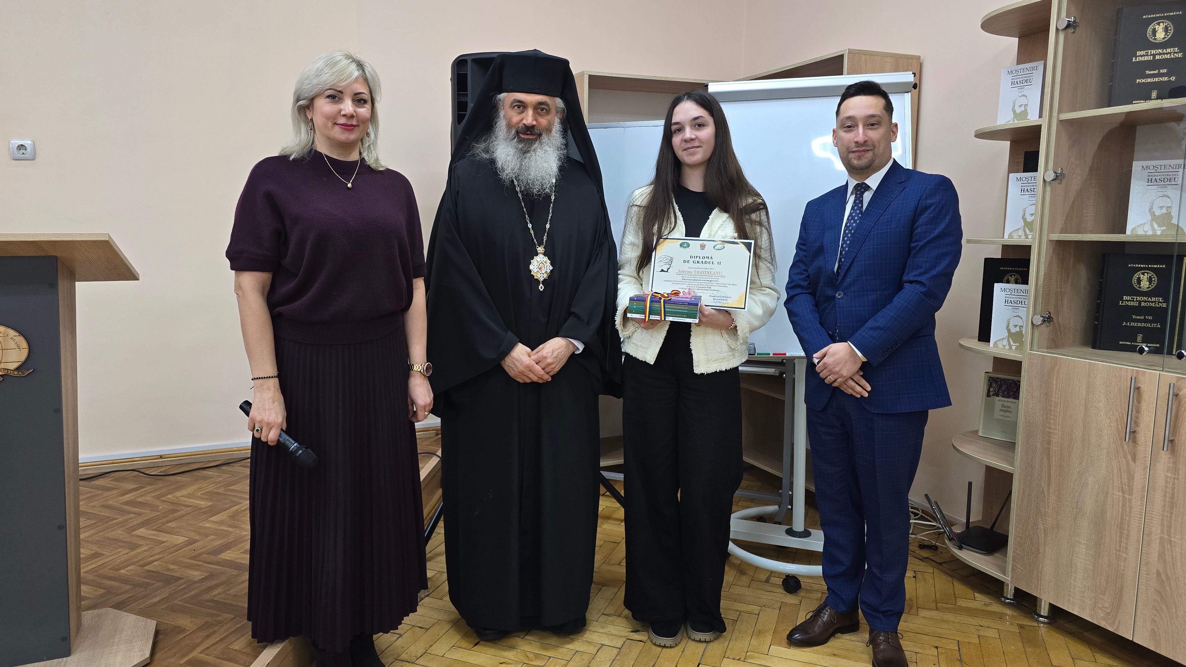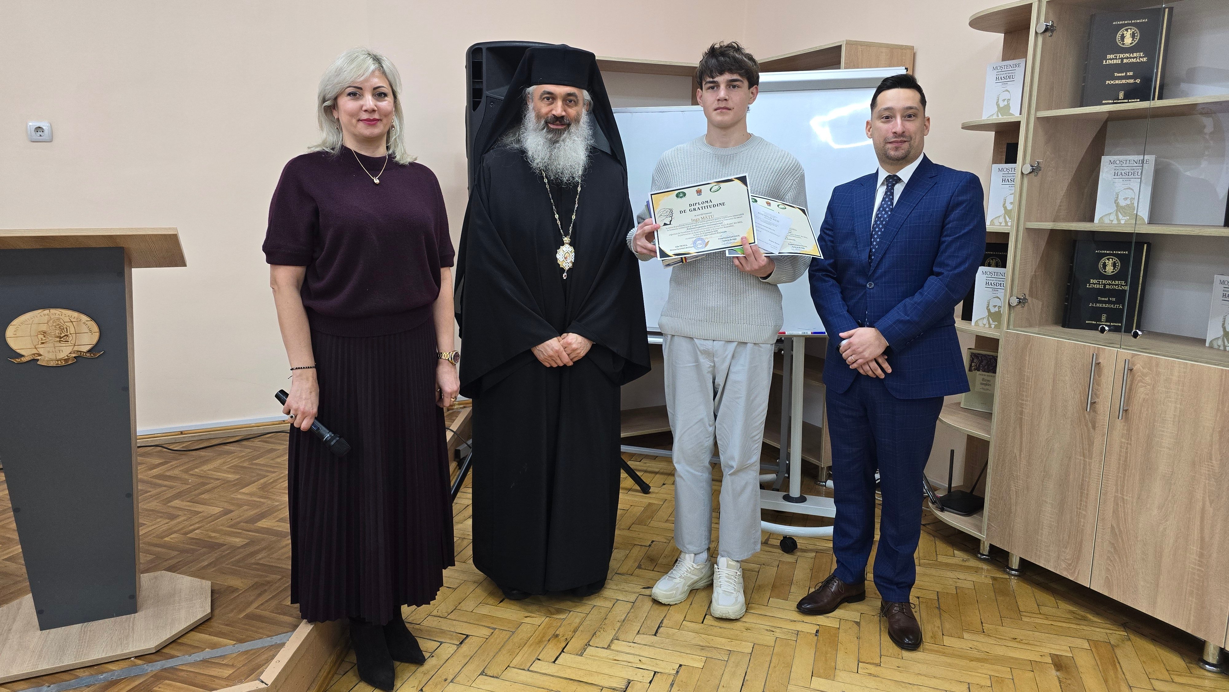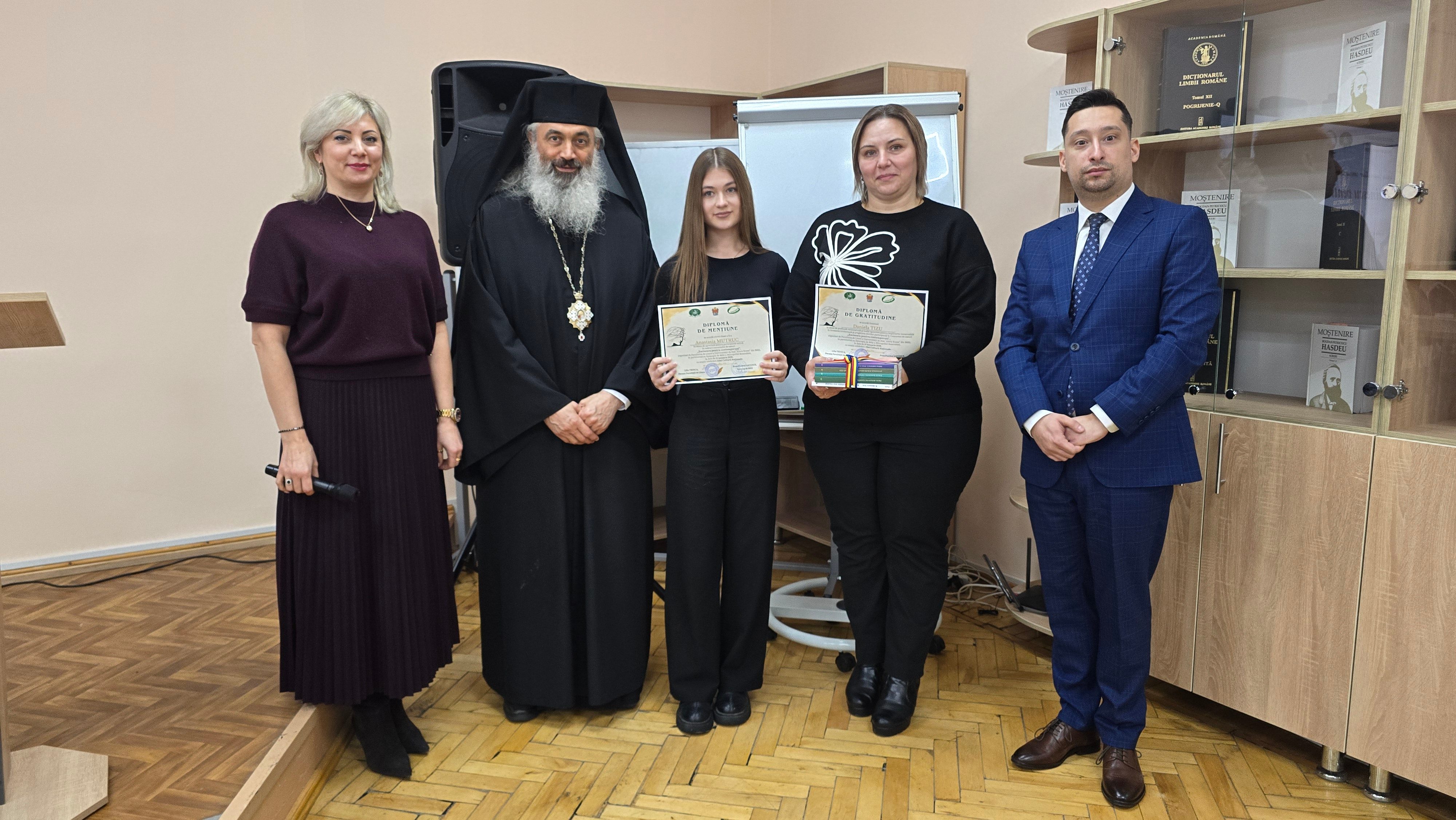Preasfințitul Antonie a adresat un cuvânt de salut, evidențiind importanța concursului în cultivarea valorilor culturale și identitare și exprimând recunoștință doamnei decan Lilia Trinca pentru sprijinul acordat inițiativei, precum și membrilor juriului pentru efortul depus.